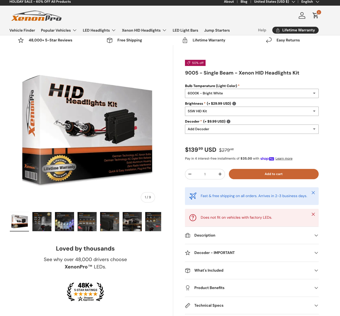 - Bulb Fitment Code: 9005