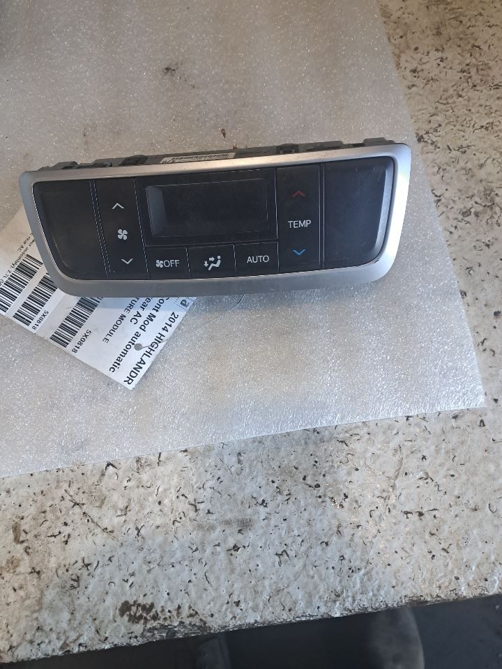 Item Description **6 MONTH WARRANTY!! 60 DAY NO HASSLE RETURNS!!** **This for a USED OEM Chassis Control Module Assembly pulled from a 2014 HIGHLANDR with 138000 actual miles on it.** **Here are our part notes about this specific part:** **TEMPERATURE MODULE** **Our Part #: 591-73169, 4284247** **Our Stock#: 5X0818** Please see the fitment section below to make sure this will fit your vehicle. Pay special attention to any options listed!!! In some cases, it may only fit vehicle with certain options or specific ID#s as listed below. **HIGHLANDER 14 Temperature; (RH blower assembly), 2.7L (VIN A, 5th digit), w/automatic rear AC** **HIGHLANDER 14 Temperature; (RH blower assembly), 3.5L, VIN K (5th digit), w/automatic rear AC** **HIGHLANDER 15 Temperature; (RH blower assembly), ID 88650-0E340** Whats Included? Whats Included? FAQ/ Help Shipping Payment Returns/Warranty #### Whats Included? ``` Here is a short description of what will generally be included with your item. If you would like more information or are unsure if something will come with your item, PLEASE ASK!! A/C Compressor: Includes the clutch/pulley assembly A/C Condenser: Sensors and hoses are not included ABS Units: Include the ATTACHED electronic module unless otherwise noted Alternator: Includes the pulley. Any brackets are not included Axle/CV shaft: Does not include the axle nut Blower Motor: Include the squirrel cage/fan blade Caliper: Includes the bracket and slides. Slides are not covered under warranty Column Switch: Includes wiring (if applicable) up to the first point it can be unplugged Control Arm: Includes the ball joint and any bushings Coolant Overflow Bottle: Cap is included Cowl Vent Panel: See Our Part notes, often sold as one side only Differential Carrier: Does not include axles Door Trim Panel: Includes handle and armrest. Does not include window/lock switches Engine: Included for convenience unless otherwise noted. These parts are not covered under warranty: Intake manifold, fuel injectors, oil pan, sensors, water pump Not included: Throttle body, Turbo, wiring harness exhaust manifold (may be left on in certain cases) Exhaust Manifold: Does not include turbo where applicable Fan Assembly: Includes motors, shroud, and blades. Fuel injectors: See our part notes Fuel Filler Door: Includes hinge. Does not include bolts/hardware Fuel Pump: Includes sending unit and any molded hoses that are non-removable Headlight: Brackets are included unless otherwise noted. HID headlights include the bulbs and ballast Hub: Includes wheel studs Ignition Coil(s): See part notes Interior Rear View Mirror: Does not included bracket glued to windshield Jack: See part notes. If noted as assembly, it will include the lug wrench Mass Airflow Sensor: Does not include housing unless pictured Power Steering Pump: Includes pulley and ATTACHED reservoir. Remote reservoirs and brackets will not be included Power Steering Gear: Includes pitman arm Rack and Pinion: Includes tie rods but they are not covered under warranty Radio: Pay special attention to our fitment description. Often times radios are more than one piece and we sell them each separately Spindle/Knuckle: Does not include hub unless noted Starter: Includes solenoid Strut: Struts are left assembled and include top plate, spring, and dust boot (dust boots on used struts are rarely in perfect shape) Stabilizer Bar: Does not include links or bushings Sunvisor: Does not include clip Taillight: Pay special attention to fitment as we list the trunk lid mounted taillights as well as the corners. Does not include bulbs Temperature Control: Includes all knobs, buttons, and sliders Throttle Body: Includes sensors but they are not covered under our warranty Transmission: Automatic transmissions include torque converters and sensors. Many newer transmissions require a relearn/programming procedure. Manual transmissions do not include any part of the clutch system. Transfer Case: Does not include electric shift motor Washer Reservoir/Bottle: Includes cap unless noted Wheel/Rim: Does not include center cap, tire, or lug nuts Window Regulator: Does not include motor unless noted (most are noted with motor) Wiper Motor: Does not include arms or transmission unless noted Wiper Transmission: Does not include motor or arms unless noted ``` FAQ/ Help #### FAQ/ Help ``` Will this fit my vehicle? Is this the right part? This is the most common question that we get. The fitment information can be confusing if you don't buy replacement parts everyday. Please contact us if you are unsure!! We try to respond to questions as quickly as possible and we are more than happy to answer any questions as best as we can. In order to speed up the process, it is very helpful, but not required, for you to send us your full VIN number along with your question. It looks like its the same color as my car, how can I tell for sure? The best way is to match the manufacturer paint code. Most of the time we include the paint code in our part notes. If you don't know what a paint code is or where yours is located, please feel free to ask. We are happy to help. I only see photos of the vehicle and not the actual part you are selling. Can you send me some? Our most recent listings include actual photos when we can provide them. If you would like an actual photo, we are more than happy to take one after the purchase for your approval before the part ships. In certain cases we will take actual photos before a purchase is made. This is on a case by case basis. Send us a message and we will let you know if it is possible for us to do so I see a wheel that says it is "B" condition, what does that mean? Grading of parts is a very subjective process but we do our best to keep it uniform. Here is a brief description of wheel grades: A Condition, A-COND = This is the highest grade used wheel. It will have very minor imperfections but will be in better condition than 90% of vehicles on the road. B Condition, B-COND = This wheel will 