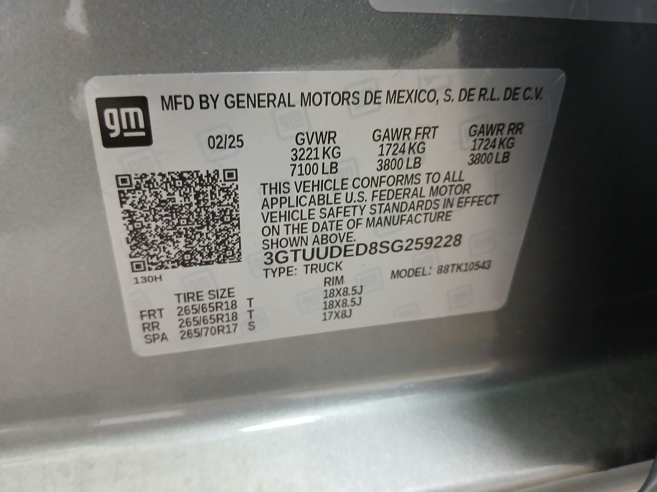 - VIN #: 3GTUUDED8SG259228