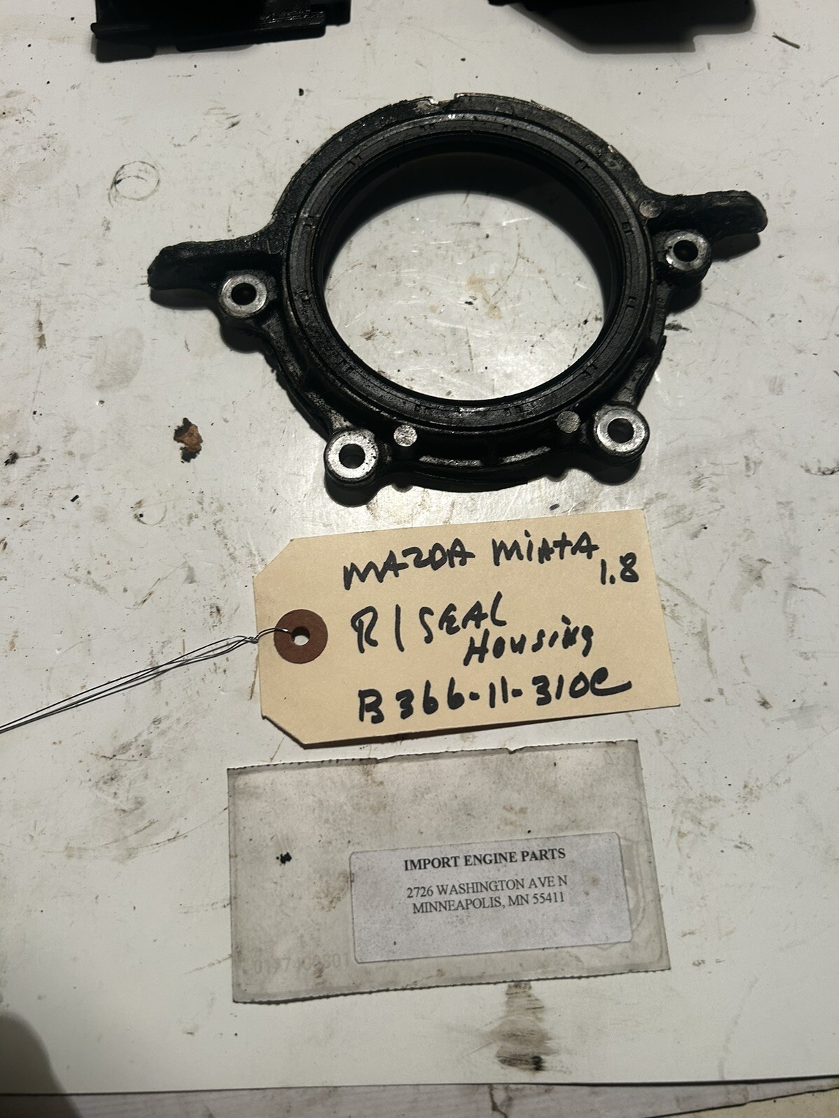 REAR SEAL HOUSING \*USED\* FITS MAZDA MIATA 1839cc "FP" DOHC 16V 1999-2005 B366-11-310C \*\*USED\*\* ALSO FITS MAZDA PROTEGE 1597cc "ZM" DOHC 16V 1999-2001 THIS IS A USED REAR SEAL HOUSING, NO SEAL INCLUDED... THIS IS THE ONE YOU WILL RECEIVE, MAKE SURE OF YOUR PURCHASE AS NO RETURNS EVERY PART I HAVE ON MY SITE IS ON MY SHELF, NO DROP SHIPS FROM VENDORS IF YOU HAVE QUESTIONS, PLEASE CALL ME