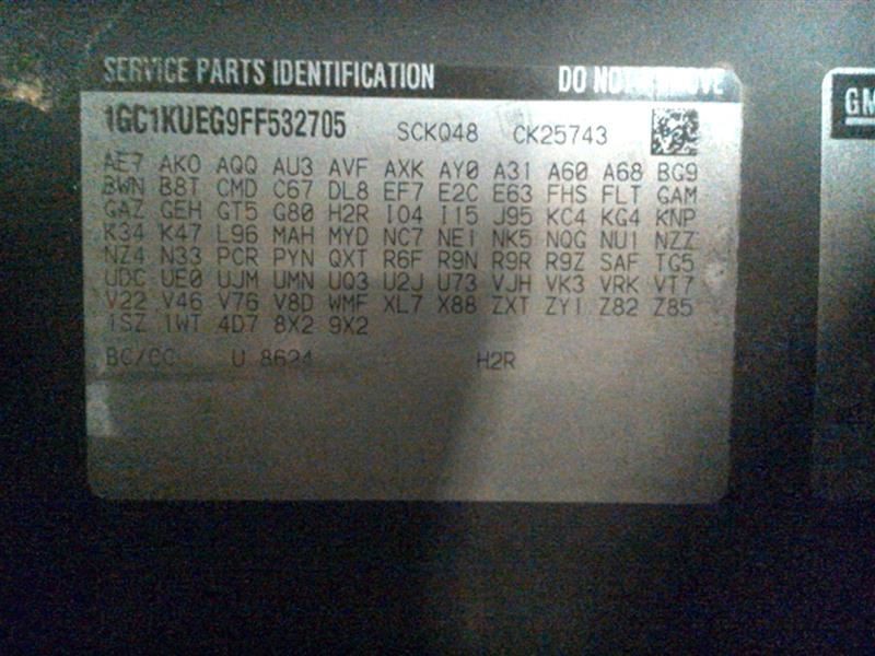 - Donor VIN: 1GC1KUEG9FF532705
