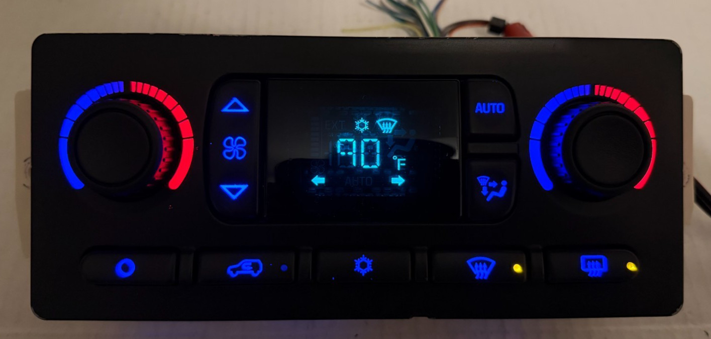 **For models with rear defroster** **WILL NOT WORK FOR TRAILBLAZER STYLE VEHICLE. FULL SIZE GM ONLY** **Refurbished OEM Automatic climate control for 2003-2006 GM full size trucks and SUV's including Avalanche, Escalade, Tahoe, Yukon, Suburban, Silverado, and Sierra. Only for models with the rear defrost button. Lighting upgraded to blue LEDs. Stepper switches work perfectly with no skipping.** **Refurbished OEM quality far surpasses the quality of the D-MAN from Ch-na units. A quick google search will show you how terrible they really are.** ****30 day returns, 60 day warranty on refurbished parts (parts only).**** ****Please do not rely 100% on the compatibility chart. Take the time to look at the photos and match the part. I don't want to give you the wrong part, and you don't want to have to return it. All photos are of actual part being sent to you.**** ****Follow and check back for a growing list of pre-loved automotive parts.**** **Paid items usually ship by the next business day. Buy it now orders require immediate payment.