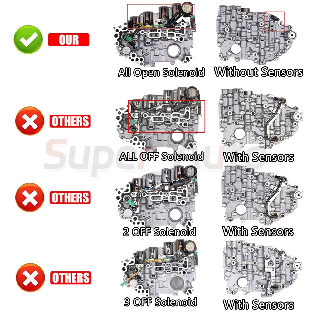 Details RE0F11A JF015E CVT Transmission Valve Body for 2012-up Nissan Sentra Versa US Part Number:RE0F11A JF015E Note: **If you don't sure the fitment.Please take a photo of all the solenoid valves clearly in your valve body. Thanks.** Fit: Nissan AD VAN 13-15 L4 1.5L 1.8L Nissan AD VAN 13-15 L4 1.5L 1.8L Nissan ALMERA 12-15 L3 1.2L Nissan BLUEBIRD SYLPHY 12 L3 1.2L Nissan CUBE 10-15 L3 1.2 L4 1.5 1.6L Nissan DAYZ 13-15 L3 0.7L Nissan GRAND LIVINA 13-15 L4 1.5L Nissan JUKE 10-15 L3 1.2L L4 1.5 1.6L Nissan LIVINA 13-15 L4 1.5L 1.6L Nissan LIVINA GENESIS 13-15 L4 1.5L 1.6L Nissan LAFESTA 14-15 L4 1.5L 1.6L Nissan MARCH 10-15 L3 1.2L Nissan MICRA 11-15 L3 0.9L 1.2L Nissan NOTE 12-15 L3 1.2L L4 1.5L Nissan NV200 13-15 L4 1.5L Nissan PULSAR 13-15 L4 1.6L Nissan QASHQAI 12-15 L4 1.L Nissan SENTRA 13-15 L4 1.8L Nissan SUNNY 10-15 L4 1.5L 1.6L 1.8L Nissan SYLPHY 12-15 L4 1.6L 1.8L 2.0L Nissan TIIDA 11-15 L3 1.2L L4 1.5 1.6L 1.8L Nissan VERSA 12-15 L4 1.6L 1.8L CHEVROLET SPARK 13-15 L4 1.0L MITSUBISHI RVR 13-15 L4 1.8L MITSUBISHI TOPPO 13 L3 0.7LMITSUBISHI A-HATCH 12 L3 1.1L MITSUBISHI A-MPV 14-15 L3 0.7L MITSUBISHI ATTRAGE 13-15 L3 1.0L 1.2L MITSUBISHI B-SEDAN 13 L3 1.0L 1.2L MITSUBISHI eK-WAGON 13-15 L3 0.7L MITSUBISHI i 12-13 L3 0.7L MITSUBISHI LANCER 13-15 L4 1.5L 1.6L MITSUBISHI GALANT FORTIS 14-15 L4 1.8L GM\\Daewoo SPARK 13-15 L4 1.0L Renault SCALA 12-15 L4 1.5L SUZUKI a-CUV 13-15 L3 0.7L SUZUKI ALTO 10-15 L3 0.7L SUZUKI A-STAR 14-15 L3 1.0L SUZUKI CERVO 10-11 L3 0.7L SUZUKI LAPIN 11-15 L3 0.7L SUZUKI MR WAGON 11-15 L3 0.7L SUZUKI PALETTE 10-13 L3 0.7L SUZUKI SOLIO 11-15 L4 1.2L SUZUKI SPACIA 13-15 L3 0.7L SUZUKI SWIFT 11-15 L4 1.2L 1.3L 1.4L SUZUKI WAGON R 11-15 L3 0.7L Package includes: CVT Transmission Valve Body\*1