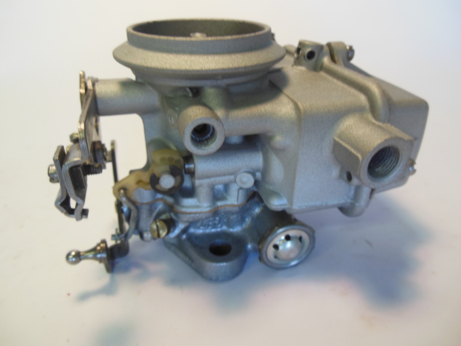 I have just completed another batch of rebuilt Holley 1904 one barrel down draft carburetors, that makes a couple hundred so far. I rebuild only the original USA carburetors, I am not involved with the "off-shore" cheapies that only work on certain year models. The three main differences between these carburetors is shown in the last photo above: 1\. Carburetor on left takes a completely different style of air cleaner, choke cable pulls to passenger's side. 2\. Carburetor in center takes normal 1904 air cleaner, and has choke cable that pulls to driver's side. 3\. Carburetor on right takes normal 1904 air cleaner, and has choke cable that pulls to passenger's side. This listing is for the carburetor on the right side in the first photo above, one (1) carburetor only. This has the choke cable brackets that require the choke cable to pull to the passenger's side. All other aspects/features of this carburetor look like the remainder of the photos above.