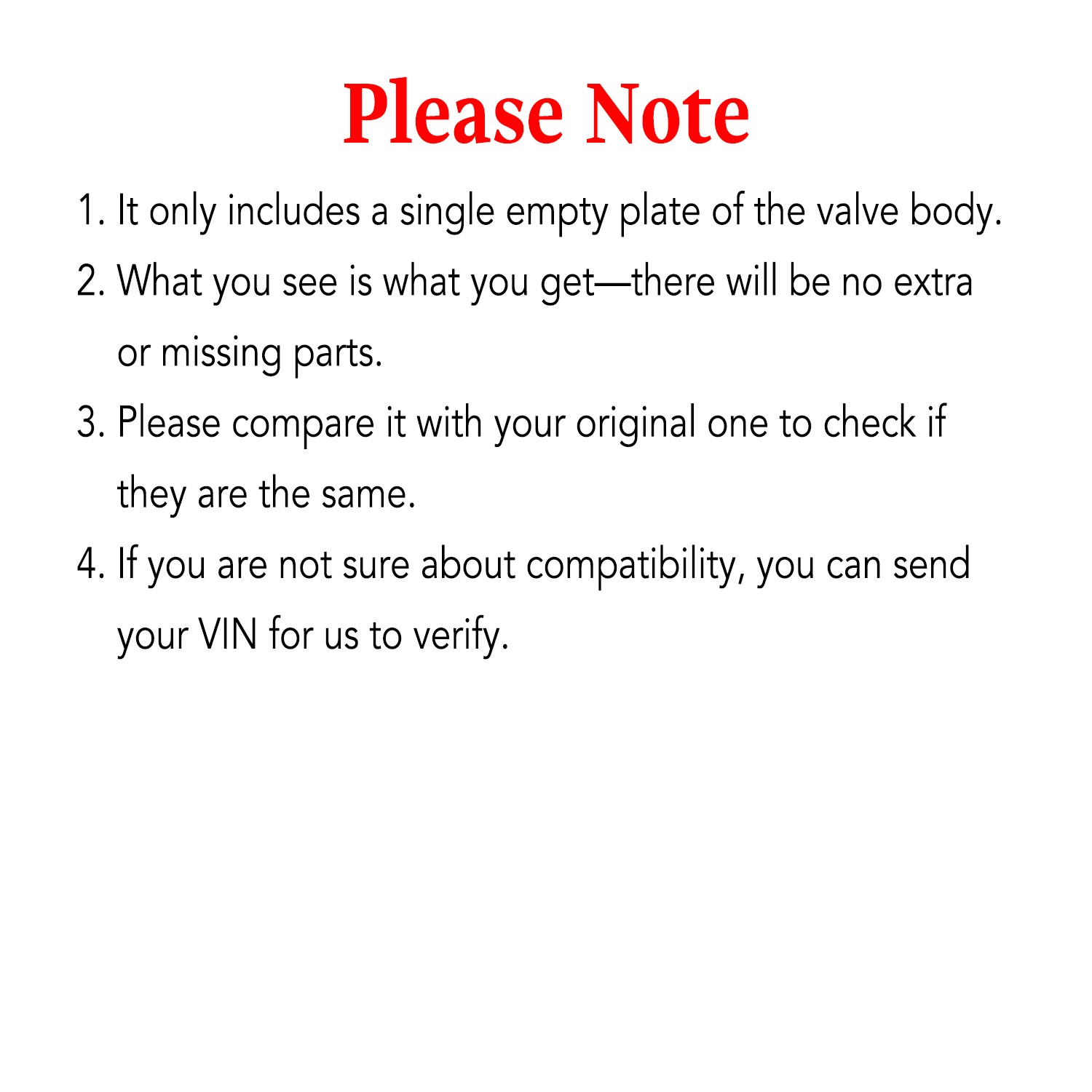 Items Description It can effectively improve the shifting logic of the gearbox, reduce jerking and delay, make the shifting process smoother and more efficient, and accelerate more smoothly. At the same time, the new valve body and solenoid valve plug block can ensure stable oil pressure inside the gearbox, reduce abnormal wear of internal components, and extend the overall service life of the gearbox. From a safety perspective, this can avoid dangerous situations such as abnormal gear shifting and power interruption caused by valve body failure, and provide protection for driving safety. In addition, it can optimize the collaborative work of systems such as the gearbox and engine, reduce fuel consumption, improve fuel economy, and save car owners on operating costs. Note: Please Take a Look at Your Old One Before Ordering. Please Be Very Careful to Check Our Photos, Make Sure The Photos Showed Is The Same as You Wanted. We Will Make Every Effort to Provide You with The Best Possible Solution. Fit for: 99-04 Jeep Grand Cherokee 4.7 2009-2011 Jeep Grand Cherokee 5.7 2005-2006 Jeep Liberty 2.8 / 3.7 2007-2011 Jeep Wranglers 2.8 2007-2009 Chrysler Aspen 2000-2011 Dodge Dakota with 4.7 / 5.7 1998-2011 Durango 3.6 / 4.7 / 5.7 2004-2011 Ram 2500 4.7 /5.7 2007-2017 Dodge 2500 6.7 2006-2011 Jeep Commander 2007-2010 Dodge Raider 4.7 2007-2011 Dodge 2500-3500 6.7 2002-2012 Ram 1500 3.7 / 4.7 / 5.7 Package Includes: 1 x Valve Body As The First Picture Shows Delivery detailsPaymentTerms of salesAbout usContact us Delivery details Usually, Item will be shipped within 1 working day after full payment is received. Normally, you will receive the item in 5-7 days. Please contact us if you don’t receive the items after 8 working days after the payment. We ship the item to the given address in your order. Please make sure the address in your order is correct. Any non-received item caused by invalid address that left in your order is not in our full refund or replacement policy. Payment We accept multi way of payment, such as PayPal, Apple pay, credit card etc. After you place the order, please finish the payment a.s.a.p. Terms of sales The buyer has 30 days to return the item for refund or replacement. The shipping fees will be on seller or buyer according to the reasons of the returned purchase. The returned product must be under resalable condition and with original package. About us We are a professional worldwide wholesale auto parts company. We specialize in auto accessories for cars, trucks, motorcycles, ATV, UTV, ships, speedboats, furniture and gardening (lawn mowers, fellers, chainsaws, generators, car washers, etc.)Our professional team dedicated to provide high quality products for the most competitive prices and excellent service!