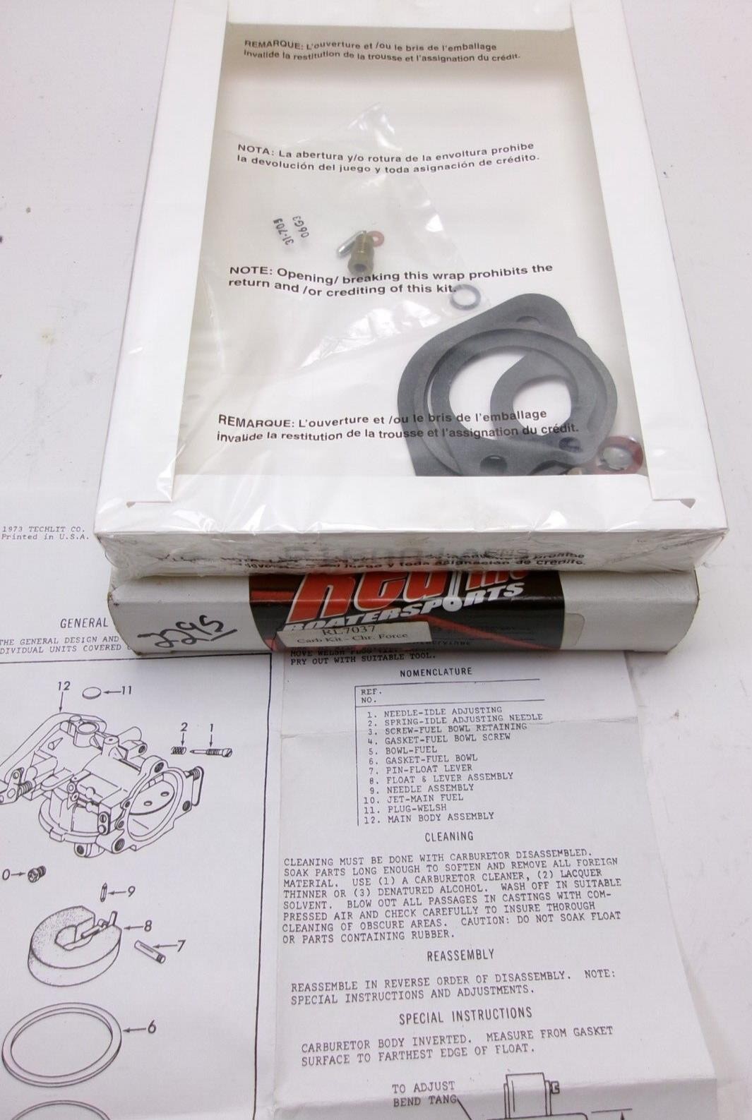 Redline Carb Kit PN RL7037 New in box # NEW OLD STOCK REDLINE BOATERSPORTS CARB KIT RL 7037 TILLOTSON TC CO WB 50-431 Force NOTE: All boat parts are part of a large inventory we purchased from an estate sale and they are sitting in a warehouse. All items are sold "with all faults", "as is", and we are not warranting the mechanical ability of the parts. We are unable to warrant each item as to its authenticity as we only have what is on the package and label when we purchased the items in bulk and we are not boat part experts. If you are unhappy with the item we do offer you a 100% refund on each item we sell for any reason.
