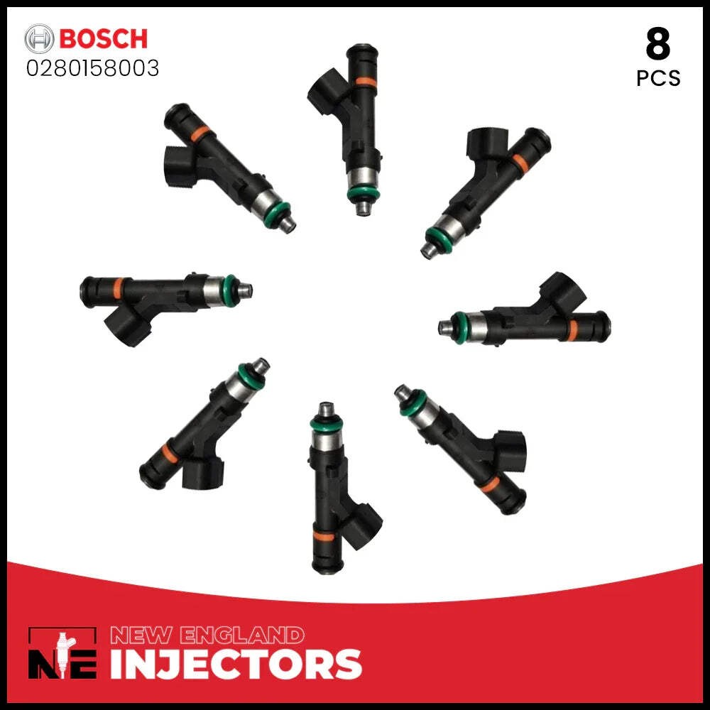 # Reman OEM Bosch Fuel Injector Set of 8 0280158003 04 Ford F-150 Lariat 5.4L V8 Remanufactured Bosch 0280158003 Fuel Injectors set (8) for 2003–2004 Ford F-150, F-150 Heritage. Professionally rebuilt to OEM specs using only genuine OEM injectors. Includes fast shipping and a 2-year warranty.  ### Improved Performance High-quality replacement part to restore optimal engine performance.  ### Easy Installation Simply remove the old injector and install this genuine replacement.  ### Exact Fit Designed to fit perfectly to ensure precise fit and optimal fuel delivery. Description Introducing our high-quality fuel injectors, designed to provide optimal engine performance, smooth acceleration, and improved fuel efficiency. With a focus on reliability and cost-effectiveness, we offer a range of features that make our injectors the ideal choice for your vehicle. **OEM Quality:** We only use OEM injectors, which offer the same performance as brand new ones but at a more cost-effective price. While these injectors may have some cosmetic flaws like discoloration and small scrapes on the body, rest assured that they function perfectly. We adhere to strict quality control and testing standards to ensure that each item meets our high-quality requirements & built for optimal performance. **Shop with Confidence:** Our injectors come with a 2-year warranty against any defects. Please note that we cannot be held responsible for any misuse or improper installation of the injectors. We strongly recommend professional installation for the best results. **Improved Performance:** By replacing your worn-out or faulty fuel injector with our high-quality replacement part, you can restore optimal engine performance, enjoy smoother acceleration, and experience improved fuel efficiency. **Compatible Vehicles:** We have a comprehensive list of vehicles that are compatible with this injector. If your vehicle is not listed, please send us a message and we will provide you with the exact item that is compatible with your vehicle. We are willing to purchase your cores to help offset some of the cost, please message us for details  #### confidence in ### quality  #### All Items Are ### in Stock  #### 30 Days #### Return Policy  #### Best Customer ### Support  ### Money back #### guarantee  #### The Standard Here at New England Injectors, we only use OEM injectors. These injectors will act brand new at a more cost effective price versus buying them new. These injectors may have some cosmetic flaws, such as discoloration and small scrapes on the body, but it do not affect the function of the injector.   #### The Process All injectors have been ultrasonically cleaned, spray pattern/flow tested, and pressure tested to ensure no leaks. They are then rebuilt with new Viton O-rings, micro filters, and intel caps. All injector sets are matched within 2% and flow at the stock flow rate unless otherwise noted.  #### The Warranty Injectors come with a 2-year warranty against all defects! We are, however, are not responsible for the misuse or improper installation of injectors. We recommend professional installation. ## Join the League of Happy Customers! - [- \ \ **Very helpful and worked fine for my Seadoo.** \ \ Flow Tested SeaDoo GTI GTX Wake SE 4-Tec 155 Fuel Injectors 420874430\ \ - \ \ **Seem to work perfectly so far.** \ \ Reman 97-02 Jeep Wrangler 2.5L Upgrade Fuel Injectors Genuine Bosch 4 Hole\ \ - \ \ **Fast shipping** \ \ Fuel Injector O-ring Seal Kit For 2005-2010 Subaru Forester Impreza Outback 2.5L](#img1) - [- \ \ **Perfect thank you** \ \ Reman Bosch Upgrade For Jeep 4.0L Type III 19LB EV1 Fuel Injectors TJ XJ YJ ZJ\ \ - \ \ **Arrived quickly and worked perfect ! Thank you so much** \ \ Reman Set Of 8 Delphi Fuel Injector 1999-2007 Chevy GMC 4.8L 5.3L 6.0L 25317628\ \ - \ \ **They work** \ \ Reman Upgrade 4 Hole Bosch Fuel Injector Set (6) Jeep 4.0L 1999-2004 Cherokee +](#img2) - [- \ \ **Excellent Seller highly recommend very satisfied** \ \ Fuel Injector Repair Kit Orings Filters Pintle Injector 96JV-AF Jaguar XJ8 XK8\ \ - \ \ **Exactly as described** \ \ Genuine Siemens Set Of 5 Fuel Injectors For 07-2010 Volkswagen 2.5L 07K906031C\ \ - \ \ **Good product, didn't get to use, was not needed.** \ \ Reman OEM Denso Fuel Injectors Set (8) 23250-50030 Lexus 4.3l LS GS SC 430 4.3l](#img3) ## About ## New England ## Injectors Here at New England Injectors, we pride ourselves in our top-notch customer service. Our priority is to ensure that our customers are happy. We answer your questions and assist you 7 days a week, our general response time is under 30 minutes. All injectors are tested on order! Please feel free to ask questions as needed, and please check out our other listings. We strive for 5 star/100% feedback, so if you are not fully satisfied, please contact us first. You can use either a credit card or bank account to complete your payment safely and securely Shipping We offer free USPS Priority Mail shipping for injector sets, and USPS Ground Advantage for single injectors and rebuild kits, to all destinations within the United States and its territories. USPS Express (overnight to 2-day service) is also available at checkout. For international orders, we typically ship via: USPS Priority Mail (Estimated delivery: 10-14 business days) USPS First-Class Mail (Estimated delivery: 14-21 business days) Please note that delivery times are estimates and may vary based on location, customs processing, and carrier delays. Returns If your item arrives damaged, please contact us immediately so we can make it right. To qualify for a return: Items must be returned in new, unused condition, in the original, unopened packaging, with no signs of installation or use. Items that show signs of use may be subject to a restocking fee of up to 50%. Once we receive and inspect your return: A full refund for the product will be issued if it meets the return criteria. Shipping costs are non-refundable, unless the return is due to o