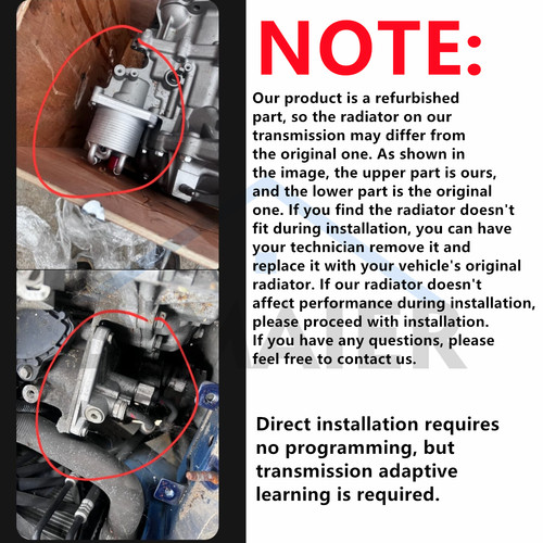 2.Our product is a refurbished part, so the radiator on our transmission may differ from the original one. As shown in the image, the upper part is ours, and the lower part is the original one. If you find the radiator doesn't fit during installation, you can have your technician remove it and replace it with your vehicle's original radiator. If our radiator doesn't affect performance during installation, please proceed with installation. If you have any questions, please feel free to contact us. - **Feature** **s:** High-quality CVT Automatic Transmission. Made by leading factory, our pumps are reliable and durable. 100% quality assurance tested, more responsive, less expensive, easier to install. Designed to meet OE specifications in form, fit and function. High quality components and materials. Superior performance and reliability. As the promise of high quality, we provide 1 year warranty for our products. If they don't work properly, within 2 months, you can return them and get fully refund; within 1 year, you can get free resend. - **Replace for Part Number :** 68000676AH,R8000676AH, RL000676AH, 68000676AG, R8000676AG, RL000676AG, 68000676AF, R8000676AF, RL000676AF, 68000676AE, R8000676AE, RL000676AE, 68000676AD, R8000676AD, RL000676AD, 68000676AC, R8000676AC, RL000676AC - **Compatible Vehicle(for reference only):** For 2007-2012 **FWD** Dodge Caliber 2.0L For 2007-2017 **FWD** Jeep Compass 2.0L For 2007-2017 **FWD** Jeep Patriot 2.0 **Year Make Model****Engine****Important vehicle option details**2011-2012 Dodge Caliber4 Cyl 2.0LHeat, Mainstreet, SE, SXT, SXT Plus, Uptown2011-2013 Jeep Compass4 Cyl 2.0LBase FWD, Latitude FWD, Sport FWD2011-2012 Jeep Patriot4 Cyl 2.0LLatitude FWD, Sport FWD 📌 If you are not very sure about the compatibility, please send us your VIN, and we will check it for you. Compatible vehicle list is only for reference, please check the part number/OEM number; 2\. Please find a repair shop to install the parts, for the installation requires professional equipment; 3\. Our prices do NOT include taxes. Buyers may need to pay import tariffs and other taxes. _**Import Taxes for International Buyers**_ _Except the product costs, buyers may need to pay additional import taxes to local customs. The taxes are based on declaration value. The taxes may be collected by courier, but they are not shipping costs._ _If there is any question or requirement, please contact us in advance._ 📌 Why Choose Us 1\. Reliable and durable products; 2\. Excellent R&D ability; 3\. Professional technicians and responsible salespersons; 4. Worry-free warranty terms; 5\. Fast shipping. 📌 Shipping 1. Items are usually handled within 2 working days; 2. We use air express: DHL, TNT, FedEx, UPS etc. for international buyers. We will choose a best for specific product and specific country. It usually costs 3-10 working days for delivery to most countries (may delayed for weather, customs check, etc); 3. For buyer from outside US, the items will be sent from our Hong Kong warehouse or other warehouses, because thiswill be faster. The products are all the same. 4. Please kindly check the items with the carrier when receive it. If it's broken, please contact us at once. We will solve it for you. We are always here waiting for your message. If you have any question, just contact us. It is our pleasure to offer any help. We believe good communicationwillprevent many troubles. We sincerely hope to provide our customers great products and service. If you are unsatisfied about anything, just tell us, we will solve the problem for you. 📌 Return & Warranty Terms We accept return in 2 months. If you are firmly to return the products, we promise you easy return experience. Please kindly keep the packing materials until you assure the products are perfectly fit for your car and you will not return them. Thank you! We provide true and effecient warranty for our products. During our warranty period, if our products do not work well due to manufactuer's defect, we will resend new replacements for free.