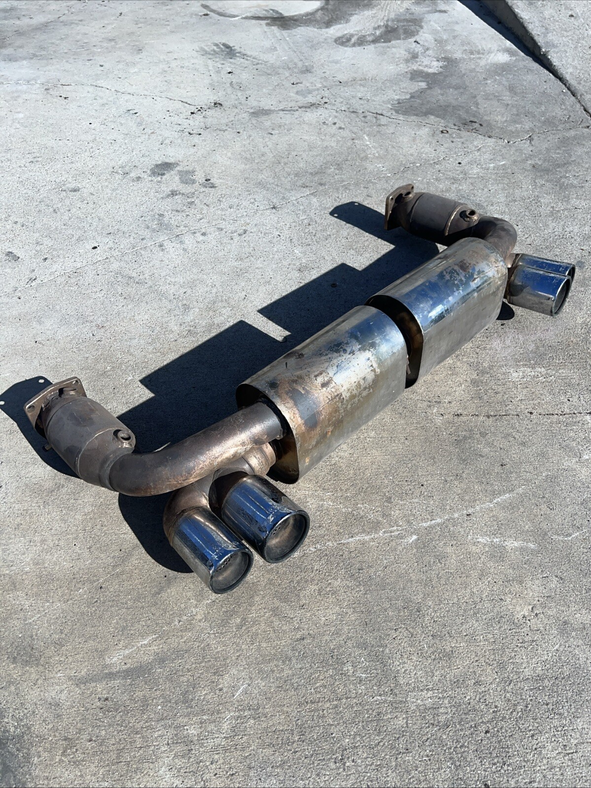 Remus 997 Turbo stainless steel sport exhaust complete exhaust system. Includes Left and Right mufflers, with race specification catalytic convertors, and 4 chrome stainless steel tips (76/84 mm). Increase power and sound with this Remus Sport Exhaust.