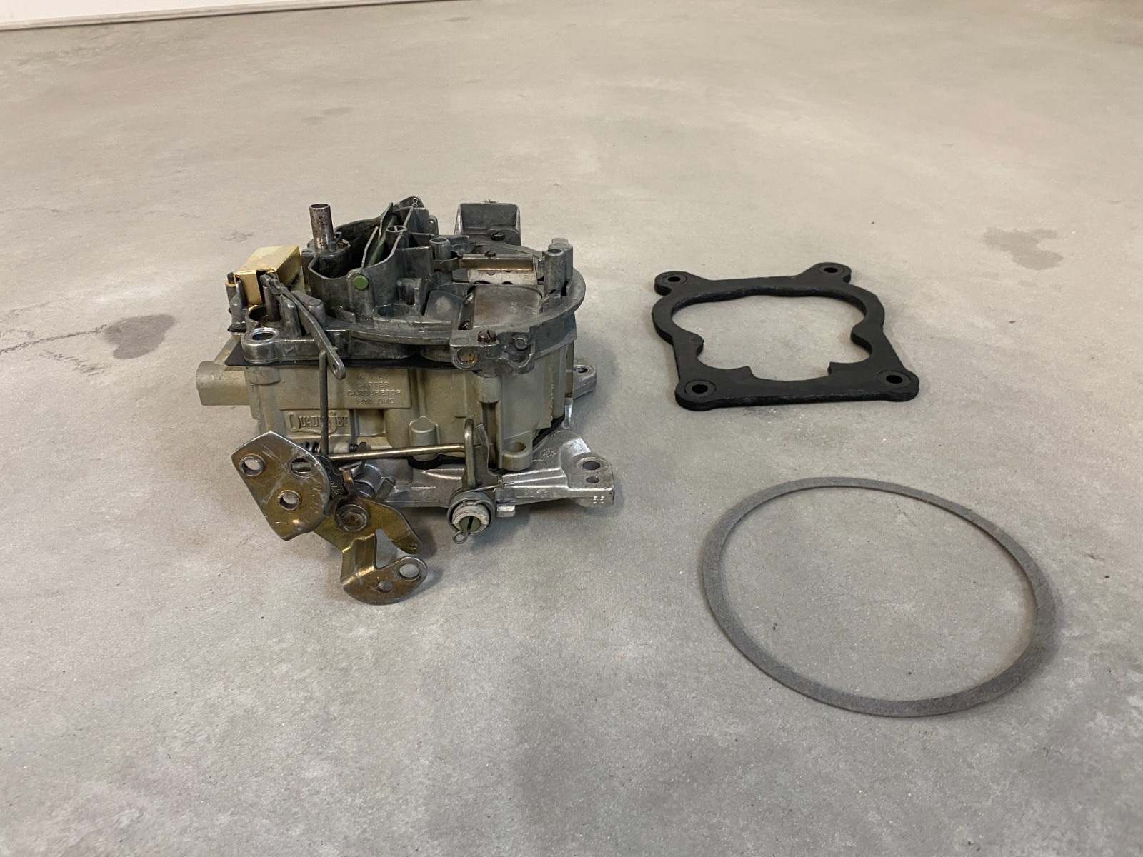 Restored 1970 Carter Quadrajet Carburetor Camaro Corvette Chevelle. Quadrajet 7040202, R4-4MV. Original Equipment to 1970 Chevrolet 350 cubic inch engine with automatic transmission. Should also work for other GM applications with similar set-up. 750 CFM. Cleaned and lubed carb with carb kit including: Ethanol resistant carburetor components - new accelerator pump - needle and seat - bowl gasket - base gasket. New power piston retainer bushing and carburetor filter installed. Jets (76) and primary metering rods (44). Secondary metering rods (BA). Choke pull-off is used, holding vacuum and operating as it should. Rebuilt base plate with bronze primary throttle shaft bushings. Float bowl plugs sealed. Bolt on, adjust for your divorced choke application, connect and adjust throttle linkage and fuel inlet, adjust timing if needed, idle, air mixture, and vacuum hook-ups. Video is of the carb being tested on my engine stand after restoring that shows vacuum hookups, engine operating temperature (180-200 degrees F), and fuel pressure (3 psi). Thanks for looking and let me know if you have any questions.