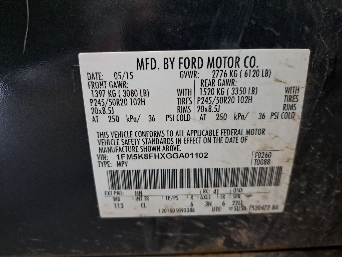 - VIN #: 1FM5K8FHXGGA01102