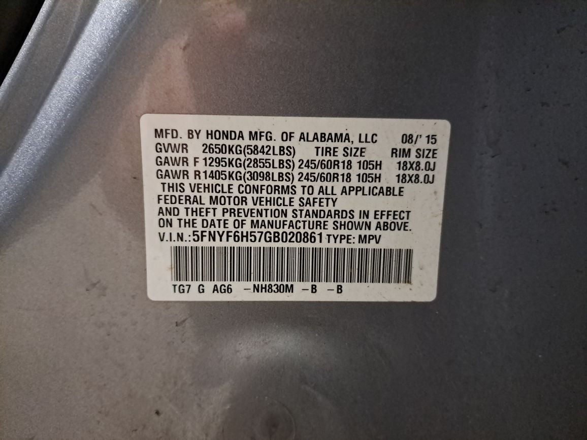 - VIN #: 5FNYF6H57GB020861