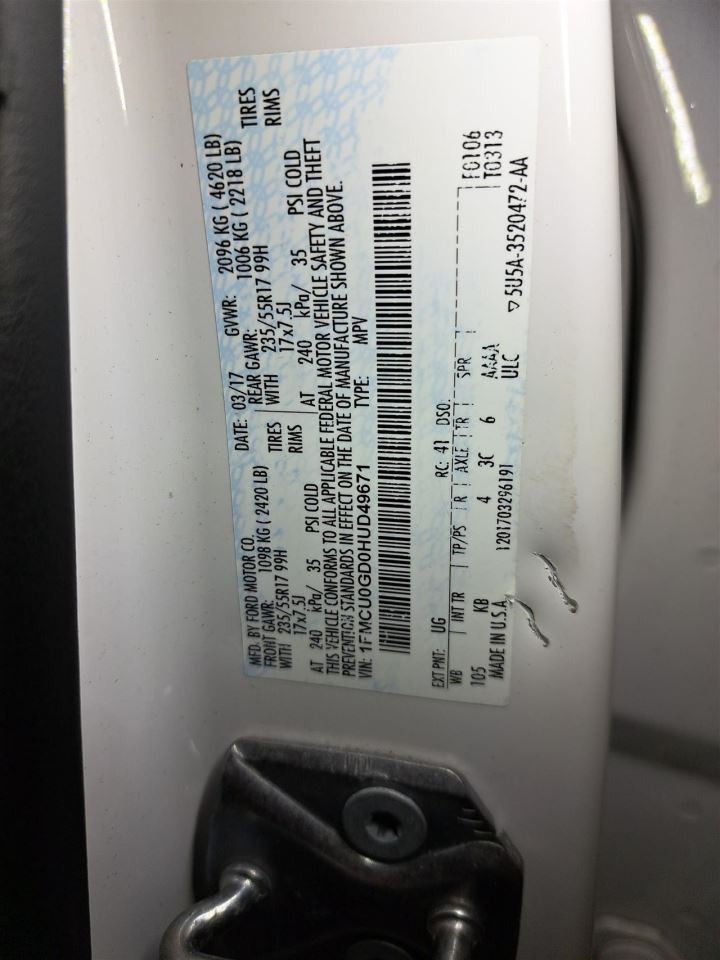 - VIN #: 1FMCU0GD0HUD49671