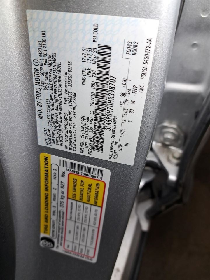 - VIN #: 3FA6P0H70HR398707