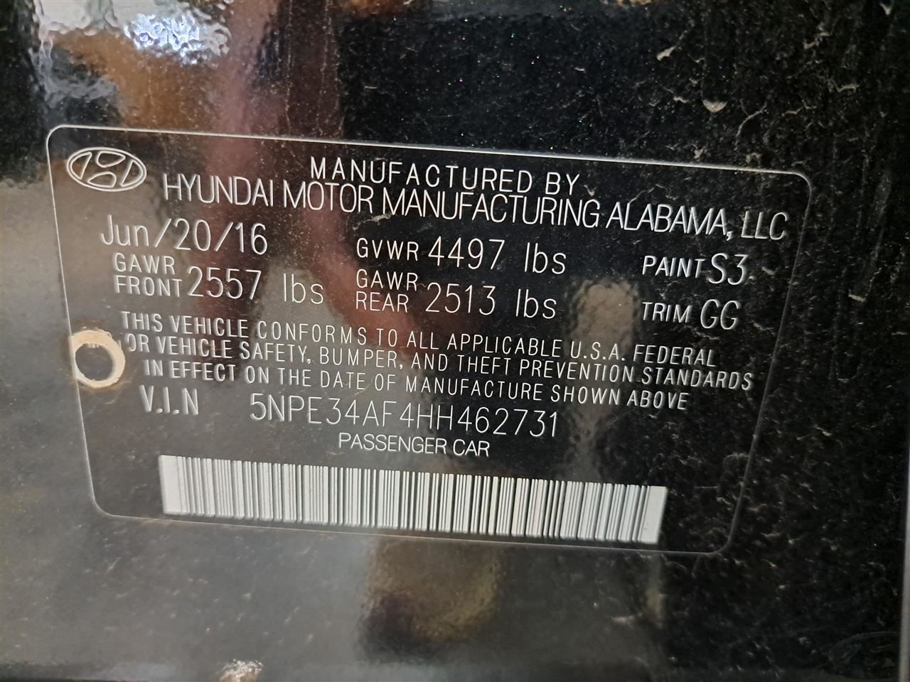 - VIN #: 5NPE34AF4HH462731