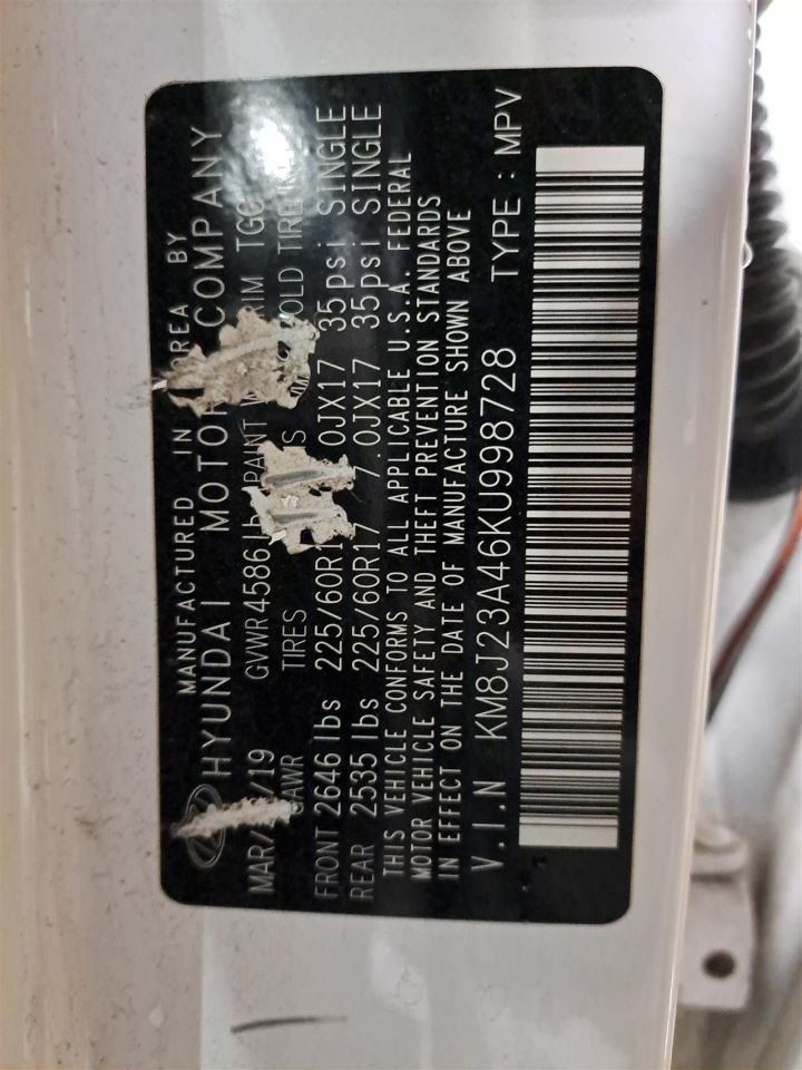 - VIN #: KM8J23A46KU998728