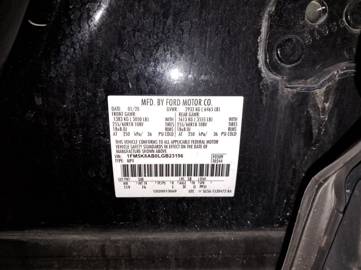 - VIN #: 1FM5K8AB0LGB23156