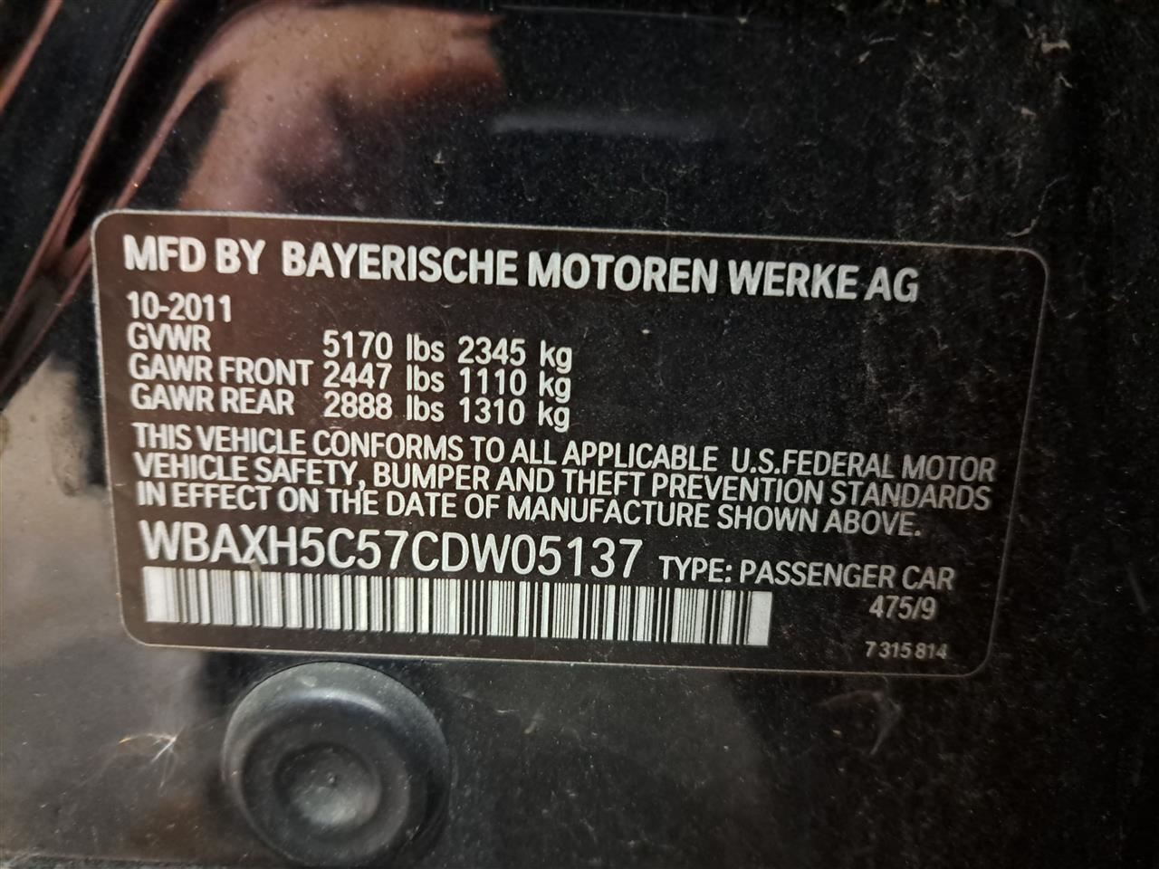 - VIN #: WBAXH5C57CDW05137