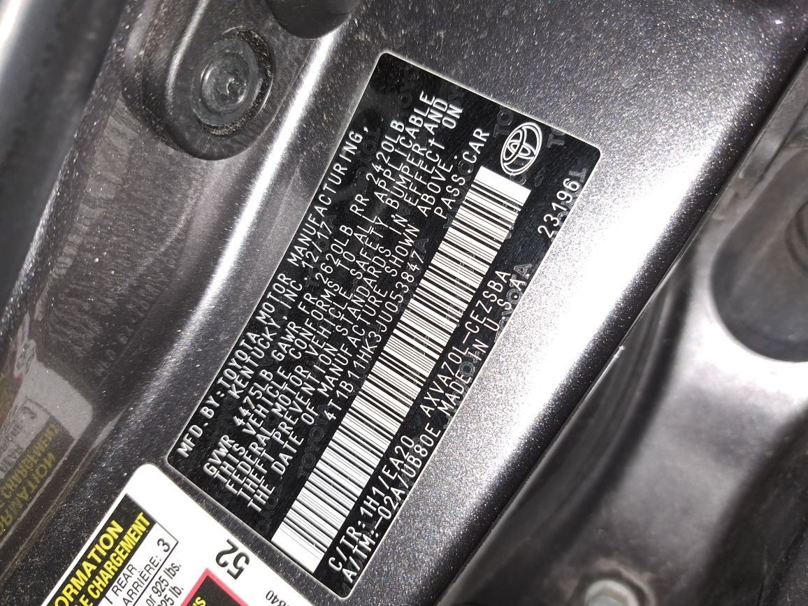 - VIN #: 4T1B11HK3JU053847