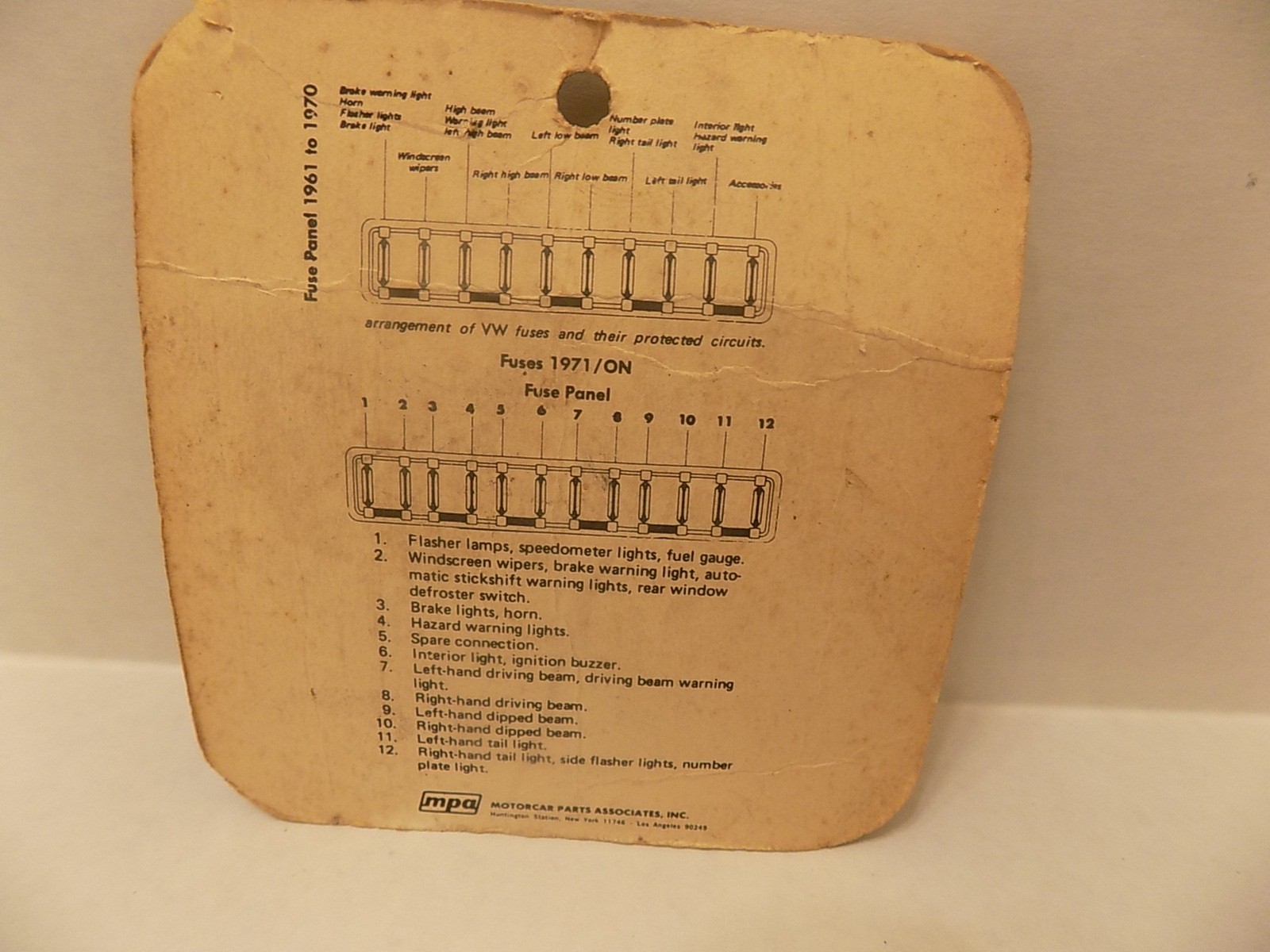 Road Baron Volkswagon (VW) RB-215 Fuses- All Models 1961 - 1970