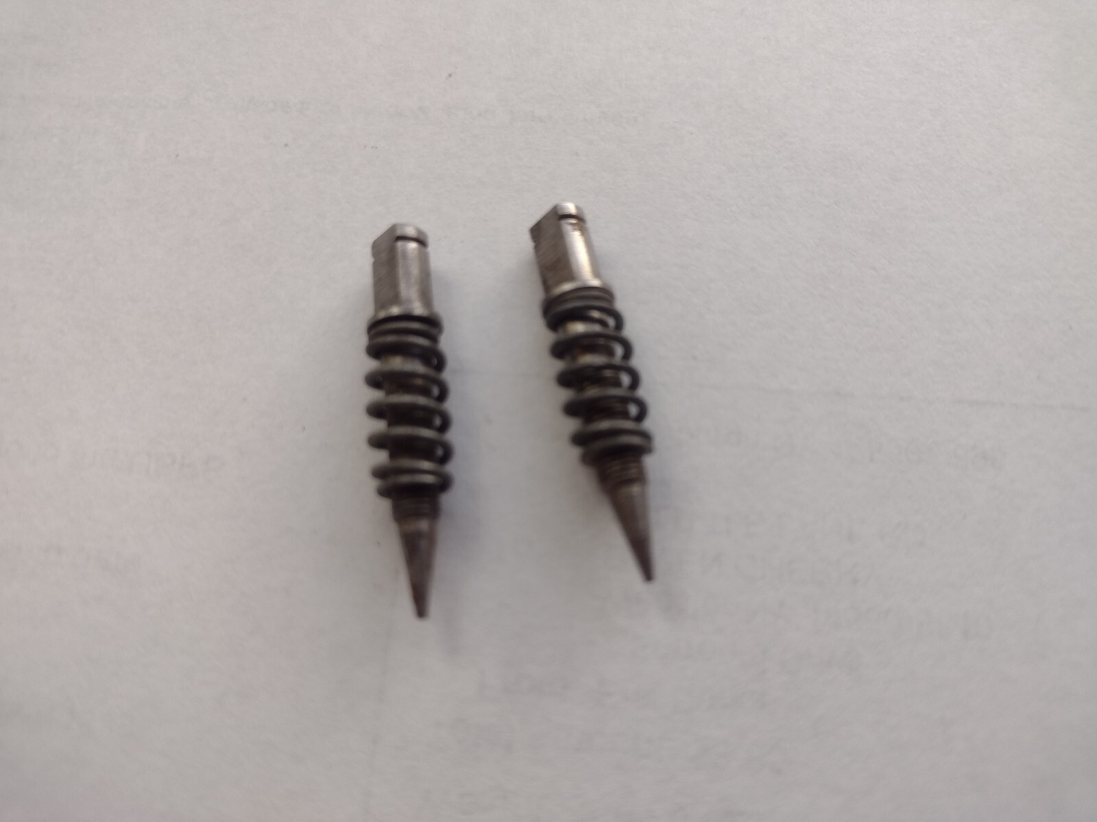 These are original screws removed from working carbs. They have been cleaned up and checked for damage. Included springs as shown. Sold as a pair. These are the newer style head design with the smaller/finer thread design used on later carbs. Roc'in Carbs - coming to you from Rochester, NY.... home of the Quadrajet!