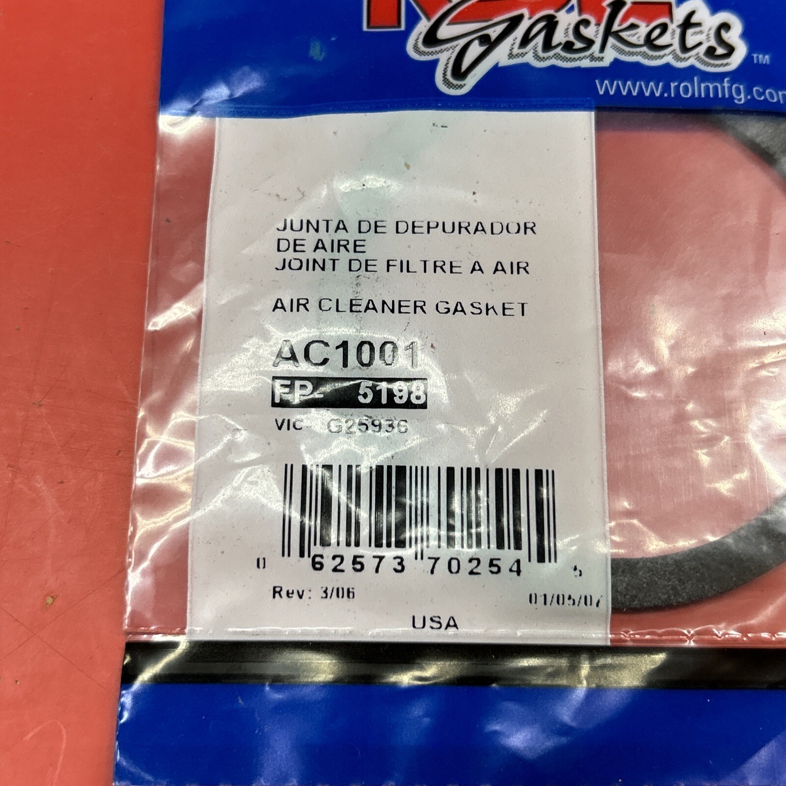 ROL AC1001 Air Cleaner Mounting Gasket Felpro 5198