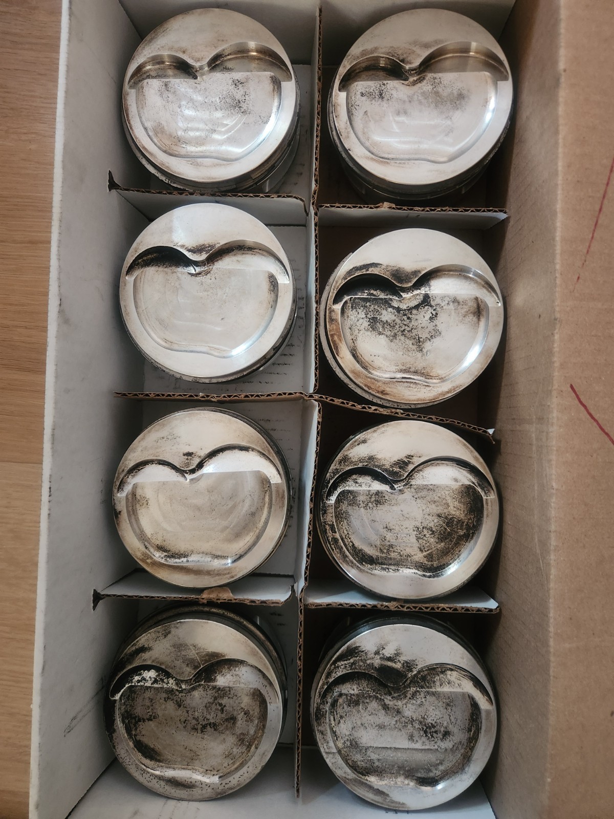 Full set of Ross 302 SBF pistons 4.060" bore -12.75cc dish Came out of a 352ci stroker (3.4" stroke) Includes unumbered wrist pin buttons