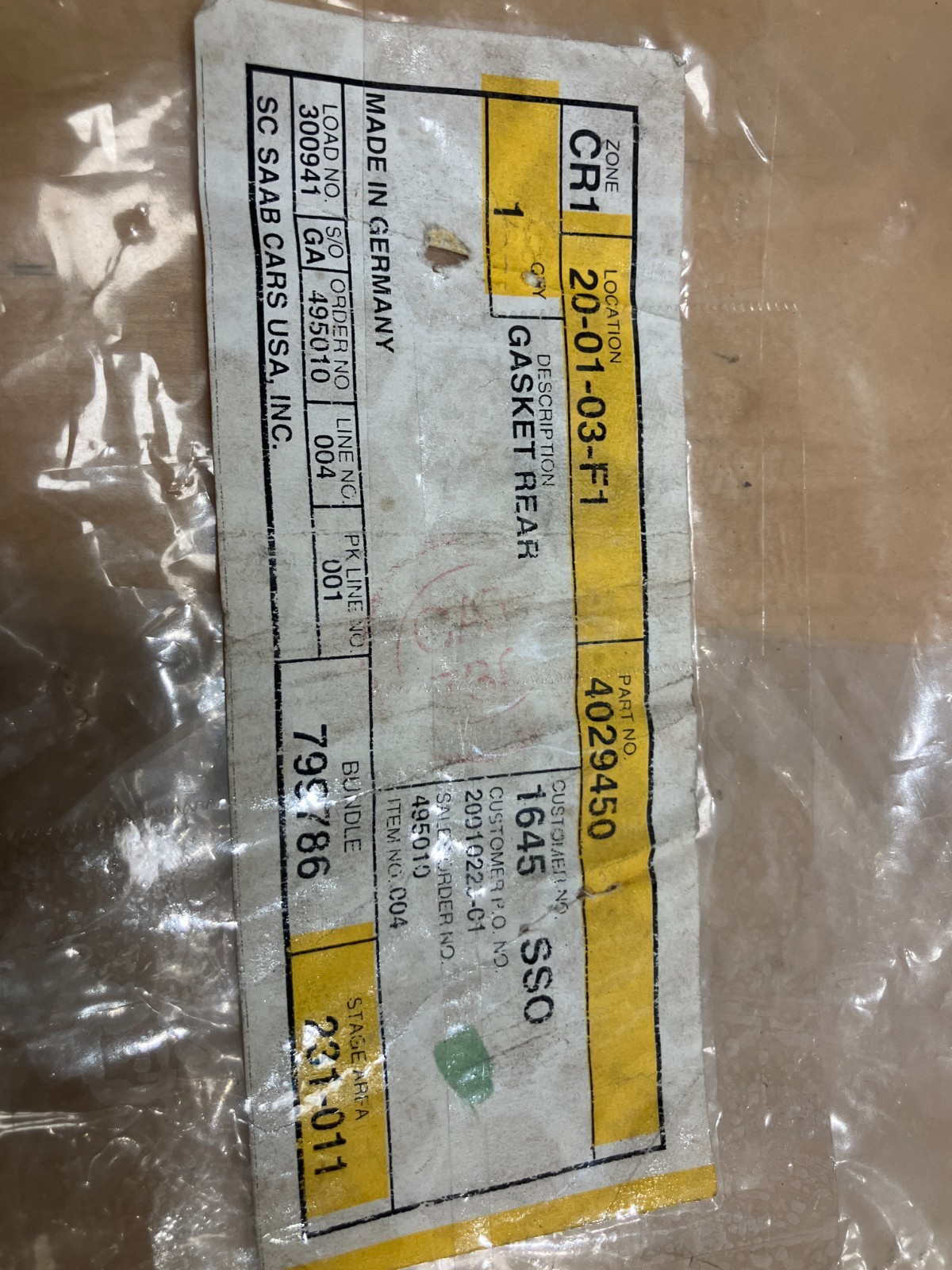 SAAB 900 OIL PAN GASKET 4029450 N.O.S.