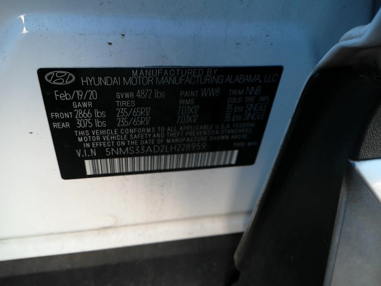 - VIN #: 5NMS33AD2LH228959