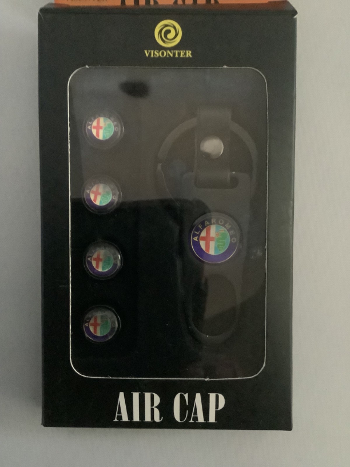 Satin Black Alfa Romeo Emblem Air Valve Caps(4) and Key Ring