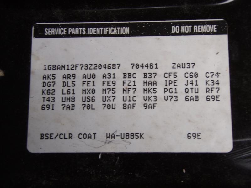 - VIN: 1G8AN12F73Z204687
