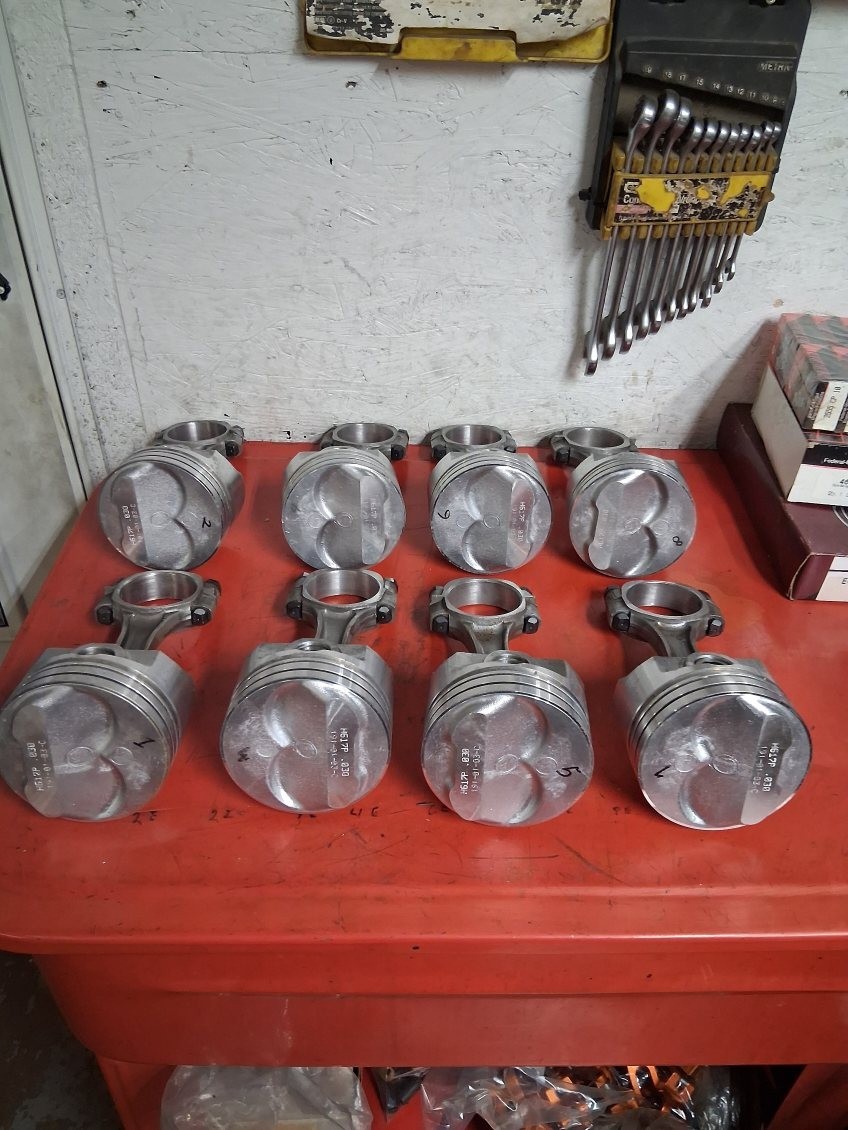 A set of never used speed pro dome pistons # H617P-.030, Pressed on a set of stock 5.700 rods with ARP rod bolts, LJ 2.100, new rings & bearings ANY ? PLEASE ASK , THANKS FOR LOOKING