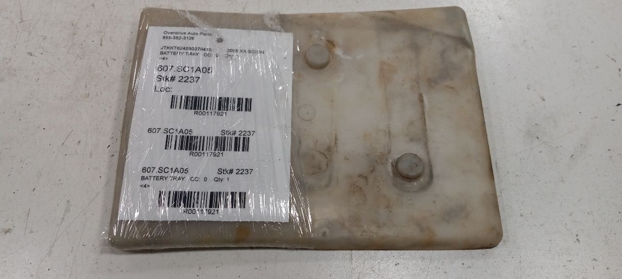 Item Description This is a quality used OEM part has been professionally removed and inspected. It is stored indoors and ready to be shipped. The pictures are the exact part you will receive. **Donor Vehicle** - **2005 XA SCION** **Stock Number** - **2237** **This part will fit these following makes and models with these options** 2005 XA SCION **Battery Tray** **<4>** More Items! We are a family owned business that takes pride in our fast handling times and friendly customer service. We've been providing high quality used OEM auto parts for many years and we love what we do! Please contact us with any questions prior to purchasing. ``` Payment #### Payment ``` All orders must be paid in full prior to shipment. We accept credit card and cash for Local Pickup orders. If payment is not received, an Unpaid Item case will be opened for the sake of seller fee reimbursement. ``` Shipping #### Shipping ``` Items are shipped after receiving cleared payment. We ship to US addresses within the continental 48 states. Shipping to AK, HI, PO Box, APO, FPO & US Protectorates: please contact first as we may be able to arrange shipping for an additional charge (depending on the part). ``` Warranty #### Warranty ``` All parts come with our standard 60 day warranty. Warranty claims must be made with our warranty department. Labor and costs associated with part installation are not included in the warranty, parts only. ``` Returns #### Returns ``` All parts must be returned in their original condition to receive full credit. Returns are accepted up to 60 days after date of purchase. Please message us with questions.