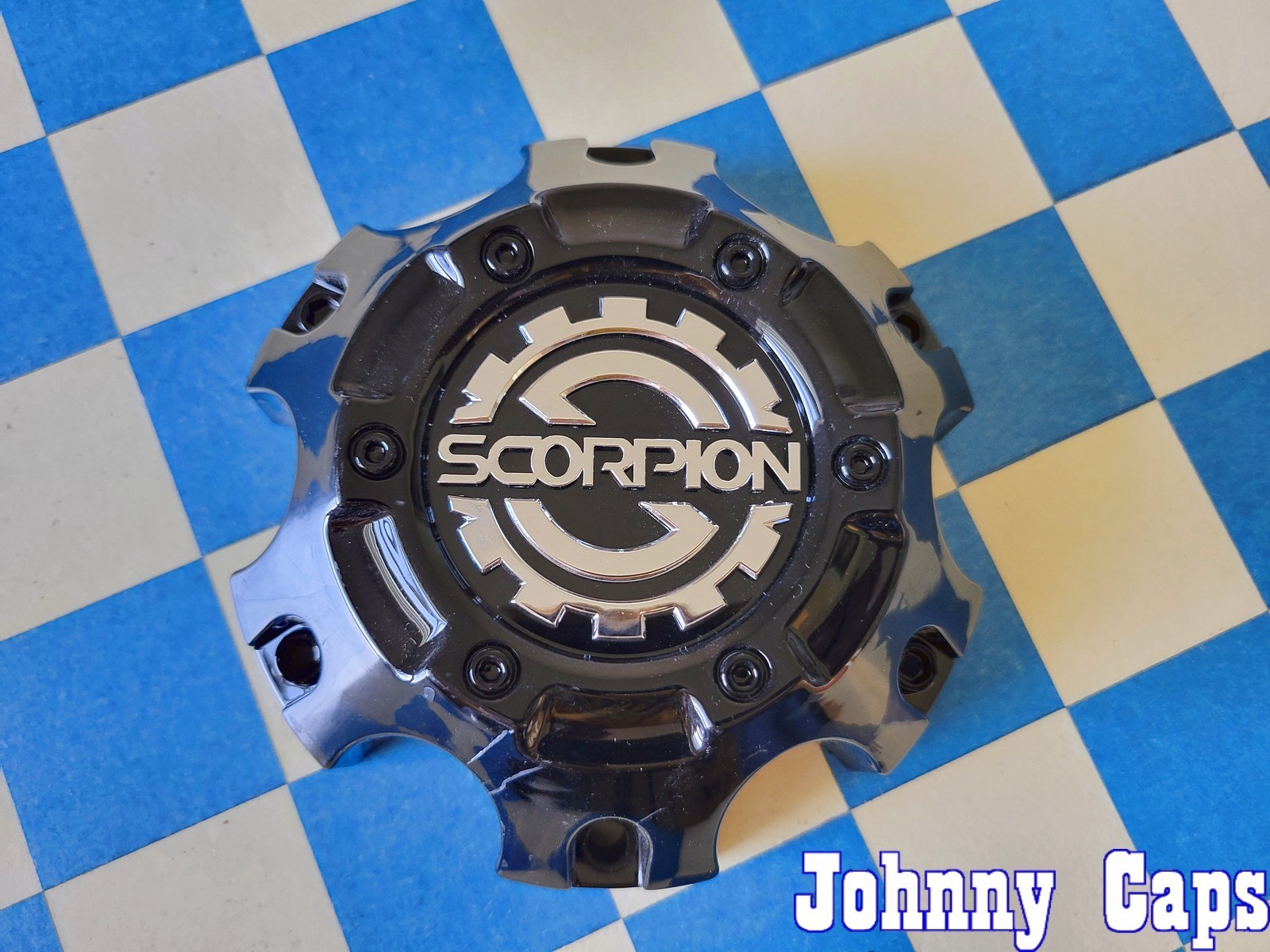 \\*\\*\\*\*\*\*IMPORTANT INFORMATION \*\*\*\*\*\* MUST READ COMPLETELY BEFORE BUYING!! - **PART NUMBERS MUST MATCH EXACTLY. YOU MUST REMOVE ONE OF YOUR CAPS AND MATCH THE PART NUMBERS EXACTLY...BEFORE BUYING.** - **CENTER CAPS COME IN DIFFERENT SIZES. MEASURE WHAT YOU HAVE AND COMPARE MEASUREMENTS AND PART NUMBERS WITH THE LISTING...BEFORE YOU BUY!** - **YOU ARE RESPONSIBLE FOR ENSURING THIS IS THE CORRECT PART AND FITMENT FOR YOUR VEHICLE.** - **ANY AND ALL RETURNS MUST BE RECEIVED IN THE SAME CONDITION THEY WERE ORIGINALLY SHIPPED AND THERE IS A 25% FEE FOR ALL RETURNED ITEMS.DOUBLE CHECK PART NUMBERS BEFORE BUYING.** - **BUYER PAYS RETURN SHIPPING.** > ******\*Exchanged only if we send a part that is different from what is shown in the listing.****** - **IF YOU HAVE ANY ISSUES WITH YOUR PURCHASE PLEASE CONTACT ME IMMEDIATELY SO I MAY RESOLVE ANY PROBLEMS. MY AIM IS 100% CUSTOMER SATISFACTION!** **For your consideration: ONE (1) GLOSS BLACK, BOLT-ON** **,** **Center Cap** **(Plastic)** **for a SCORPION****Wheels****Custom Unknown Aftermarket** **Wheel.** **This Extremely** **Rare! Cap isUSED** **and in GOOD** **condition** **(some minor scratches from being handled,** **LOOK CLOSELY AT ALL THE PICTURES!).** **(1****) Cap Only.****Bolts NOT Included.** **Diameter: Approx. 5-1/2** **" inches overall diameter. .** **Part number:#****264/265-CAP , LG1704-01** \[58\] **on back of cap.** **Finish: GLOSS BLACK******(Plastic)**. - **YOU ARE RESPONSIBLE FOR ENSURING THIS IS THE CORRECT PART AND FITMENT FOR YOUR VEHICLE.** - **ANY AND ALL RETURNS MUST BE RECEIVED IN THE SAME CONDITION THEY WERE ORIGINALLY SHIPPED AND THERE IS A 25% FEE FOR ALL RETURNED ITEMS.DOUBLE CHECK PART NUMBERS BEFORE BUYING.** - **BUYER PAYS RETURN SHIPPING.** ******\*Exchanged only if we send a part that is different from what is shown in the listing.****** **Thank you for your** **interest,** > > > > > > > **Johnny Caps**