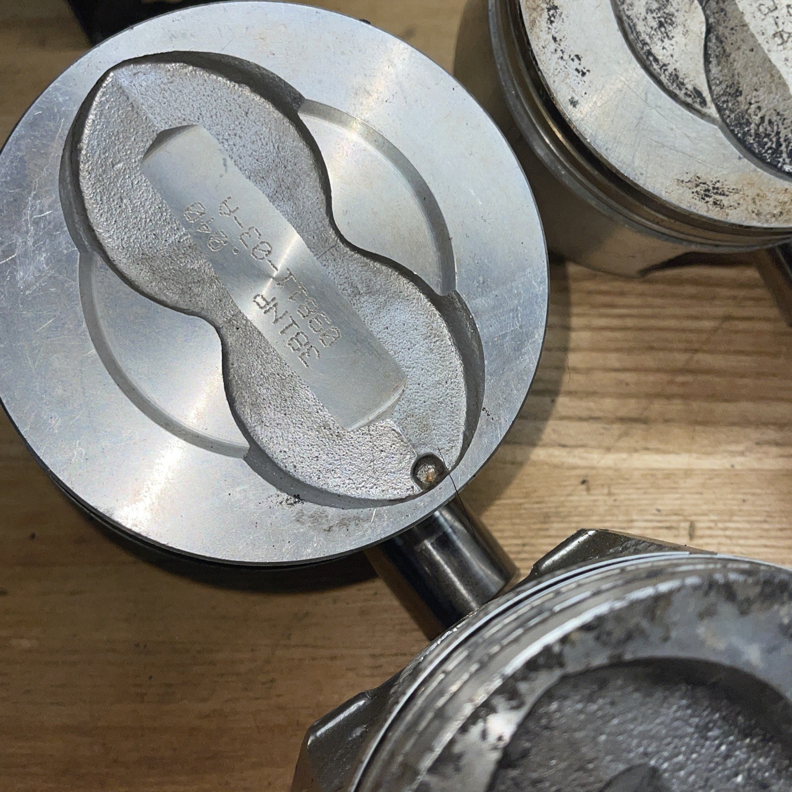 Review pictures pistons were installed and run for a short period of time a while back. Motor was pulled shortly after and we put a bigger motor in the truck. No damage to any of the pistons. They come with all of the wrist pins and all of the lock rings. Parting out motor. Sold truck a long time ago. Motor had been on stand for years. Pistons have marks from used. We had all of this inspected and it’s good to go n
