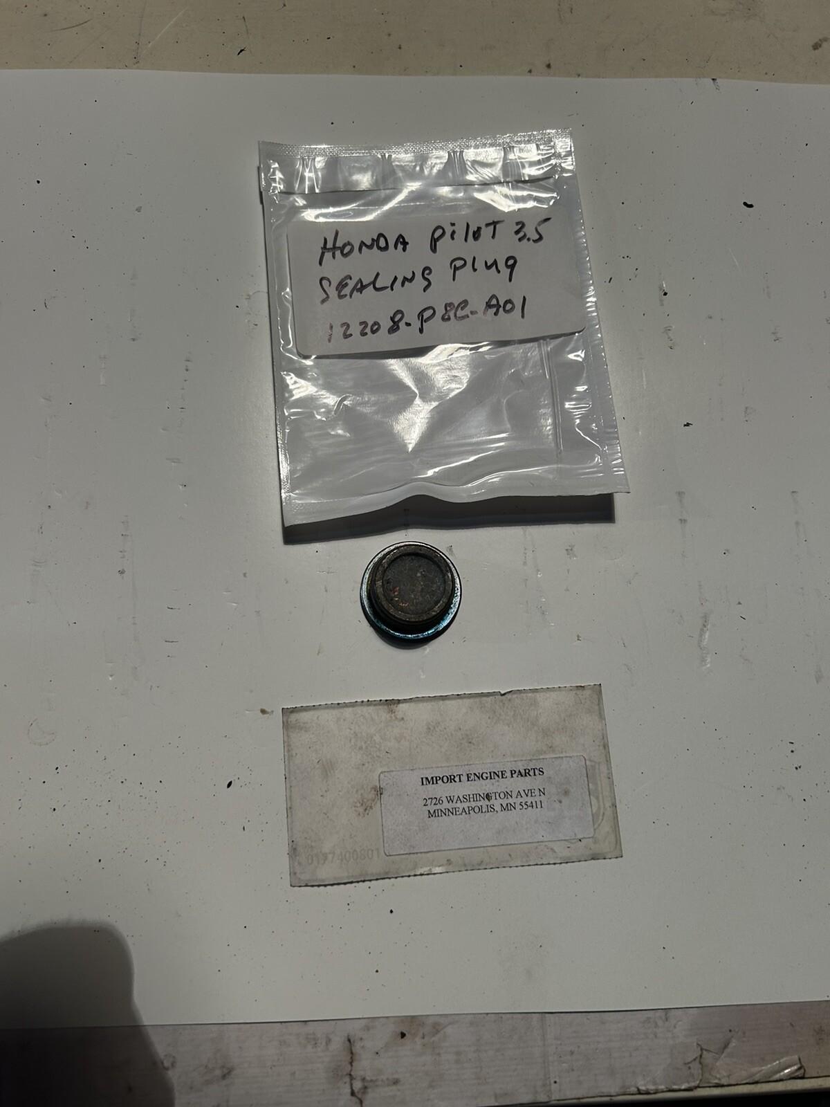 SEALING BOLT/PLUG \*USED\* FITS HONDA PILOT/RIDGELINE 3471cc J35A9 SOHC 24V 2005-2020 12208-P8C-A01 "OE" HONDA \*\*\*USED\*\*\* SOLD AS A SINGLE PART FITS ON BACK OF HEAD 28mm SIZE ALSO FITS HONDA ACCORD/ODYSSEY 3471cc J35A SOHC 24V 2006-2010 \*\*CHECK THE PIC, IT'S THE PART YOU WILL RECEIVE\*\* \*\*\*NOTE, THESE ARE USED PARTS, MAKE SURE OF WHAT YOU WANT, NO RETURNS ON \*USED\* PARTS EVERY PART I HAVE LISTED ON MY E-BAY SITE IS ON MY SHELF, NO DROP SHIPS FROM VENDORS. NOTE THAT I USE "ITM" FOR MY CATALOGING, NOT ALL PARTS SHIPPED WILL BE ITM'S PLEASE CHECK CATALOG FOR CORRECT FITMENT, QUESTIONS? CALL ME