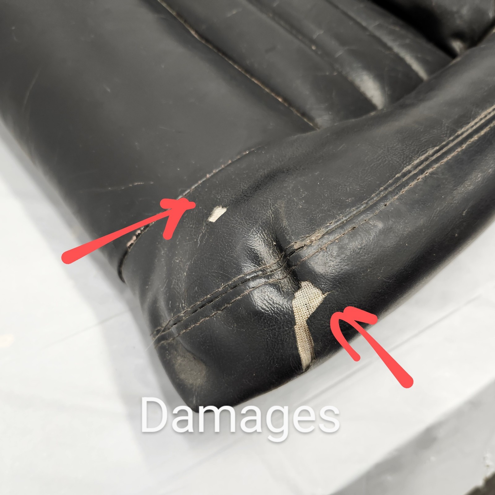 -Fits 1979 Thru 1982 C3 Corvettes -Seat Cover On Foam Cushion Black USED 78-82 C3 Corvette Upper Seat Back OEM FLAW -USED OEM part with DAMAGES ( Red arrows pointing ) Tear / Rip, but overall good condition for its age, its a little dirty with wear, SEE PICS It will come as shown -Genuine GM Part: # N/a -Color: Black **Just Corvettes** Our company is committed to customer satisfaction and of course, Corvette parts! Every part is handled with care whether its new, used, re-conditioned, or re-manufactured to provide the best quality to our customers. If you have any questions, concerns, or general comments feel free to message us on E-Bay. Please give us feedback on our E-bay store if we met or exceeded your expectations;we would greatly appreciate the time and effort as we try to give the best experience to each of our customers. If you felt we did not reach your expectations, allow us to fix the problem within reason before giving a negative review. Make sure to check out our other great listings on Corvette parts and accessories. **Thank you for choosing Just Corvettes!** **Our Return & Warranty Policy:** **Warranty: Seven (7) Days on Used Parts; Thirty (30) Days on New or Rebuilt Parts.** **There is a 25% restocking fee on ALL returns. Customer will pay shipping both ways.** **There is also a minimum** **50% restocking fee on any item sent back SAID (Significantly Not As Described) and is found not to be SAID!** **All returns must be approved by us , Just Corvettes, and be returned within Fourteen (14) days of the ship date** **All returns must include a copy of the original invoice.** **Any claims for shortages or defective merchandise must be made within Seven (7) days** **after receiving the product.** **There are no returns on Electrical Items or Damaged items** **Warranty includes manufacturing defects ? Electrical Items are excluded** Shipping We typically handle packages for 1-3 business days, freight items must be handled at least 3-7 business days. We mainly ship USPS and UPS for bigger items Only certain listings require us to use Fed-Ex Ground/Home Delivery only. Any items that are shipped via Flat Rate Freight will need a business location to be delivered to, **HOME ADDRESSES WILL NOT WORK**. JO