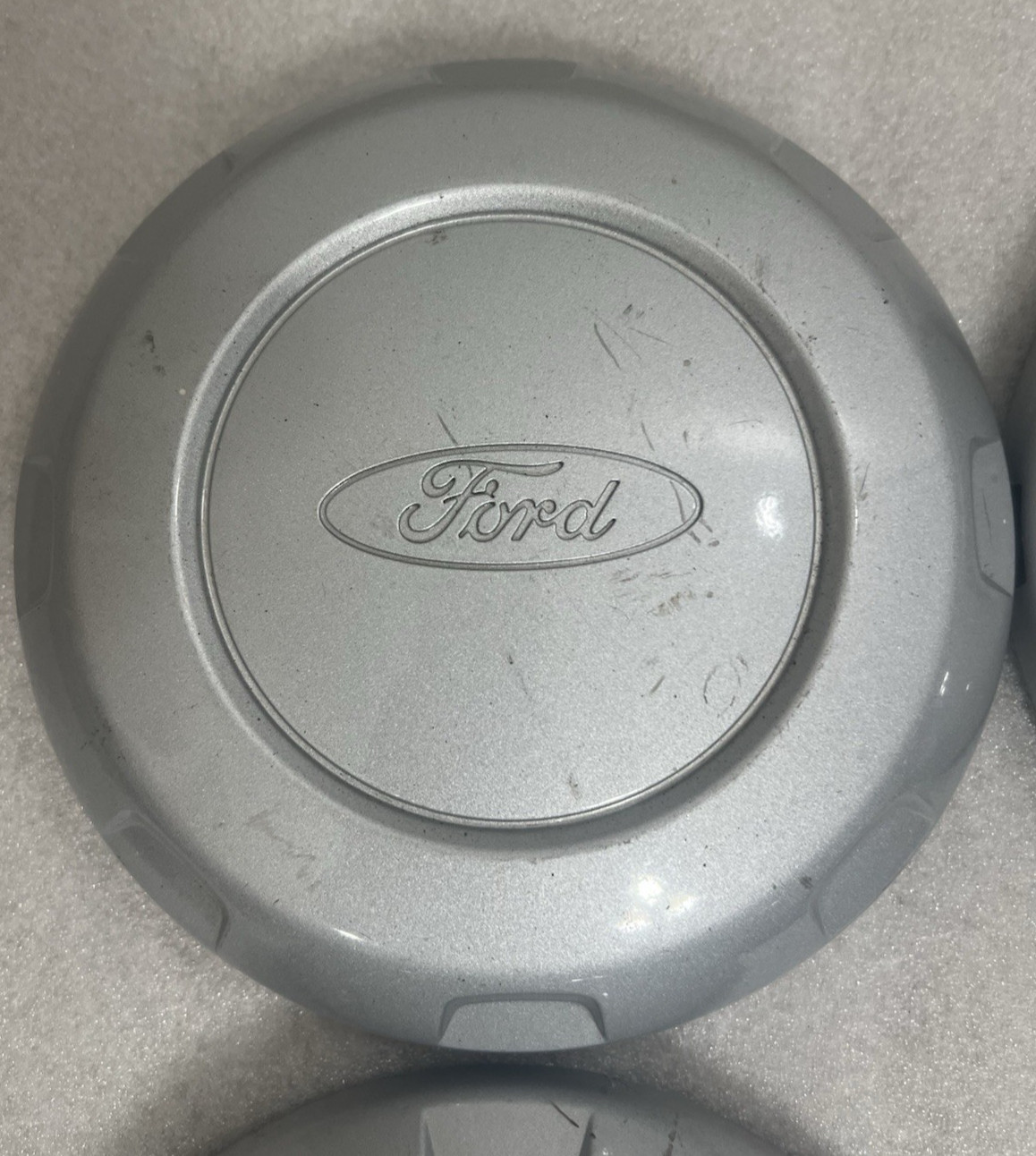 This listing is for a set of 4 used genuine Ford center caps. Some scratches-see additional pictures. All rear clips are intact. Could be touched up.