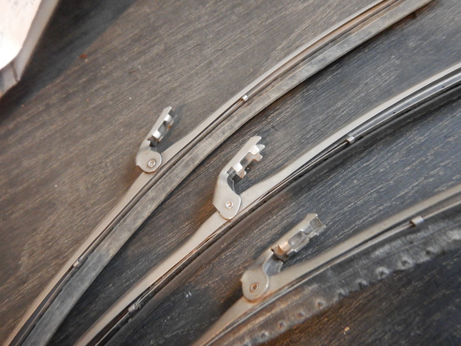 You are looking at a matched set of Jaguar XKE coupe windshield wiper blade holders. These were removed from a 1972 E-type coupe. They have the satin or matte finish and are correct for 1968-75 series 2 coupe. The actual blade holder measures 11 ¼” un-compressed,11 ½” compressed and from tip to tip on blade end to end, 12’. All the correct TRICO and MADE IN ENGLAND markings. Straight pieces. The rubber blades are still soft but should be replaced. On a scale of 1 to 10, this set is an 8.