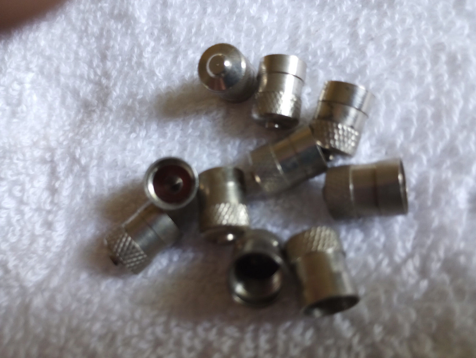 Set Of 10 Heavy Duty Metal Tire Valve Stem Caps. Good used condition with red rubber seals. Thanks for looking.