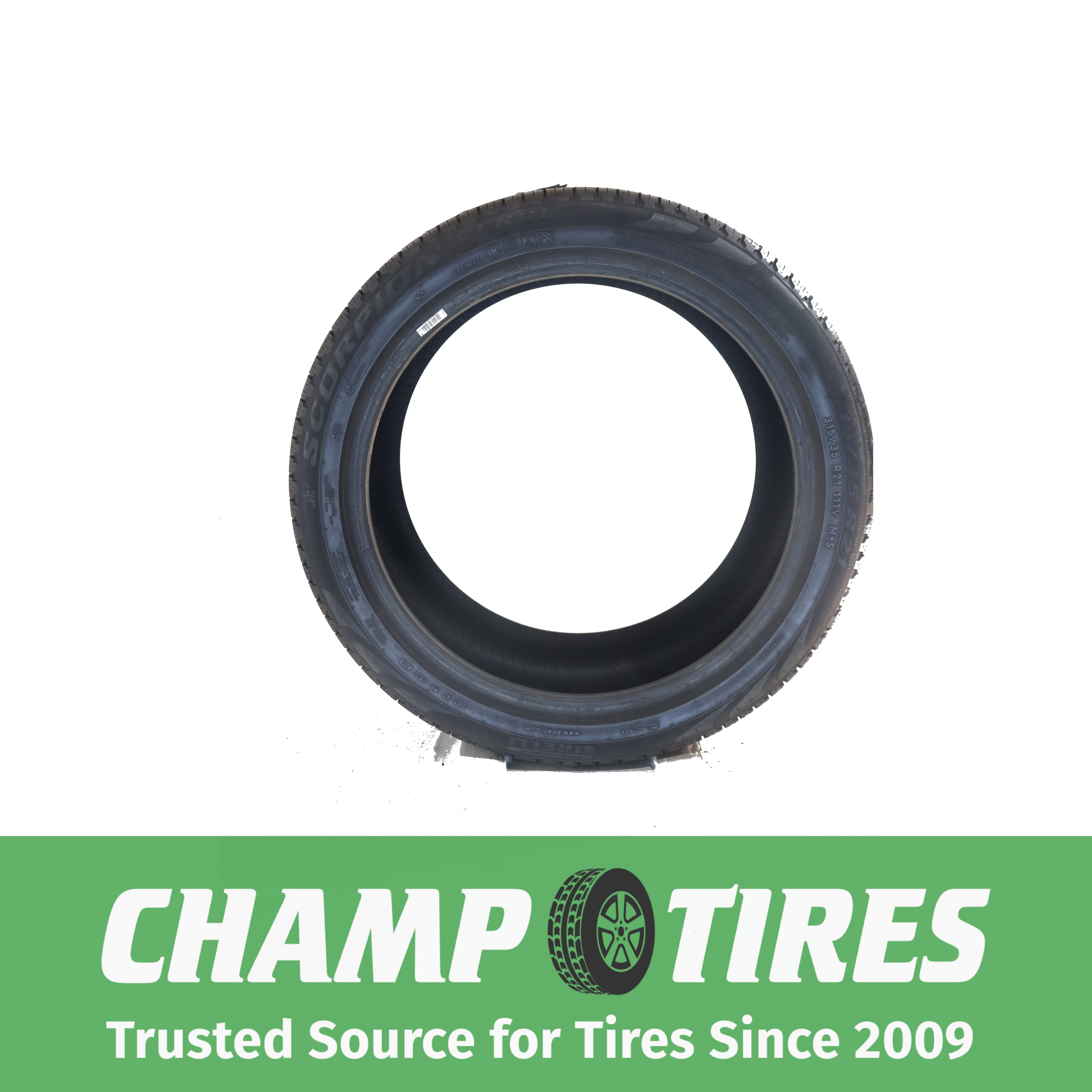 itemTitle **Champtires is not an authorized Pirelli dealer. The manufacturer warranty does not apply.**    **P315/35R21 Pirelli Scorpion Verde All Season NO 111 V Used 8/32nds** About Champtires Since 2009, Champtires has sold new and the best used tires to drivers across the U.S. Champtires fully inspects – visually and by air-testing – all tires. Some tires have been repaired using an industry-standard plug-patch combination that will last the lifetime of the tire. Champtires will not repair a tire’s sidewall. Tires cannot be returned for having repairs. Tread depths are accurately measured. If you have questions about manufacture dates (DOTs), please also send us a message before placing an order. About our Tires Champtires sources only the highest quality used tires. All tires go through a three-step inspection process, which involves a visual inspection, air-testing and a final check before shipping. Tread depths are accurately measured. Some tires have been repaired using an industry-standard plug-patch combination that will last the lifetime of the tire. Champtires will not repair a tire’s sidewall. Tires cannot be returned for having repairs. If you have a question about whether a tire has been repaired or not, please send us a message. If you have a questions about a tire’s manufacture date, please send us a message as we would be happy to provide the DOT. All messages will be answered within 24 hours, most often within a few hours. Shipping Details We ship using FedEx Ground to the continental 48 states. Your tires will leave our facilities within one business day. Return Policy Tires can be returned within 30 days if they were inaccurately described or damaged. Please send a message with any return requests. Disclaimer Limitation of Damages: Under no circumstances, including negligence, shall Champtires be liable for any direct, indirect, incidental, special, punitive, or consequential damages that may result from the use or inability to use any product(s) purchased from Champtires, including but not limited to flaws/defects, or any other failure or inadequacy related to the product(s). Disclaimer of Warranties: The product(s) purchased from Champtires are provided “as is,” with all faults, and without warranties of any kind, either express or implied, including but not limited to implied warranties of merchantability and/or fitness for a particular purpose. Pure Pass Through: Champtires is a pure pass through retailer of products, and such products are provided “as is”, with all faults. Assumption of Risk: The product(s) purchased from Champtires are provided “as is,” with all faults. Purchaser acknowledges the risks associated with purchasing a product “as is” and assumes any and all such risks.