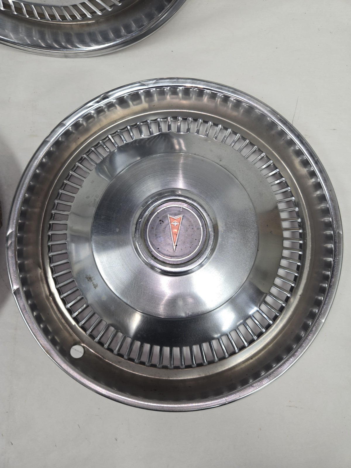 Set of 3 1974 1975 1976 pontiac lemans firebird Ventura 14inch stainless steel hubcaps wheel covers are in good condition no cracks or broken tabs however there are some dings and scratches associated with used parts could be used as is or could be restored 72.50$