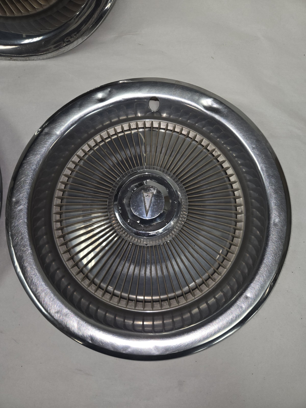 Set of 3 1978 1979 1980 1981 1982 1983 1984 pontiac lemans grand prix 15inch Stainless Steel hubcaps wheel covers tan or beige fins are in ok shape however there are several dings and pitting and scratches associated with used parts see all pictures could be used as is or could be restored 75.00$
