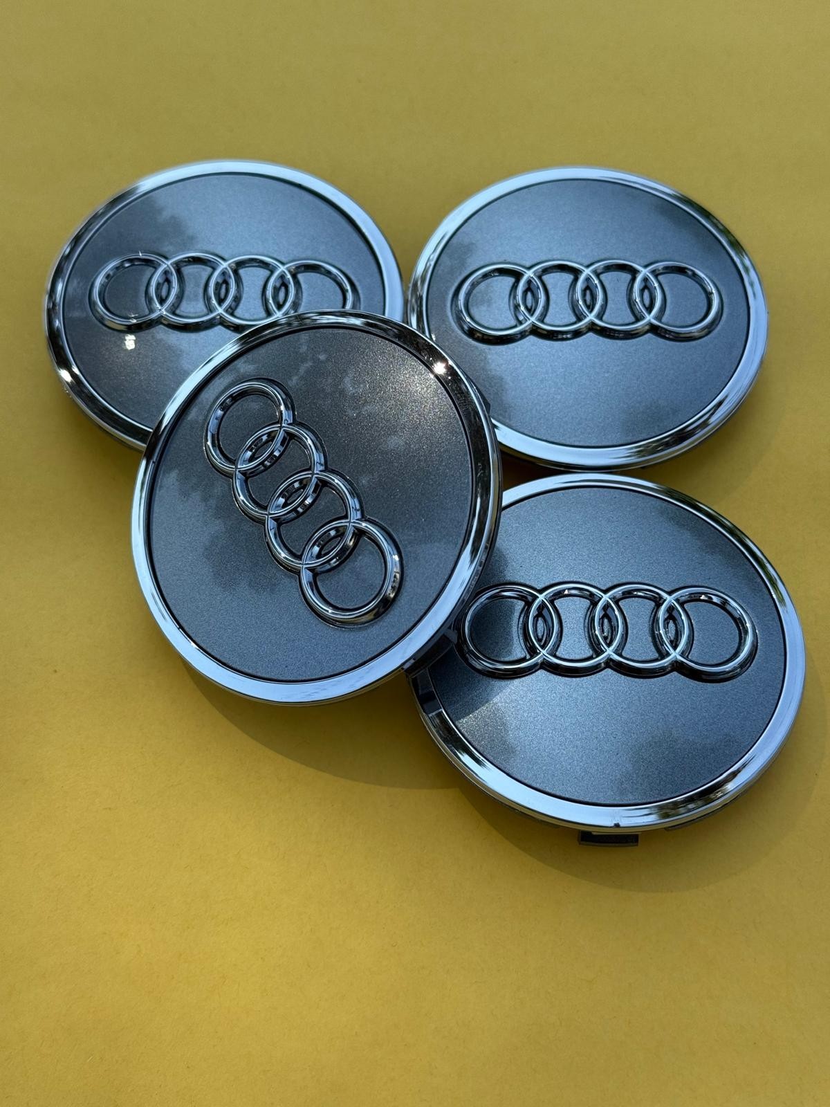 Set of 4 Gray Audi Wheel Center Cap Chrome Logo 61 MM