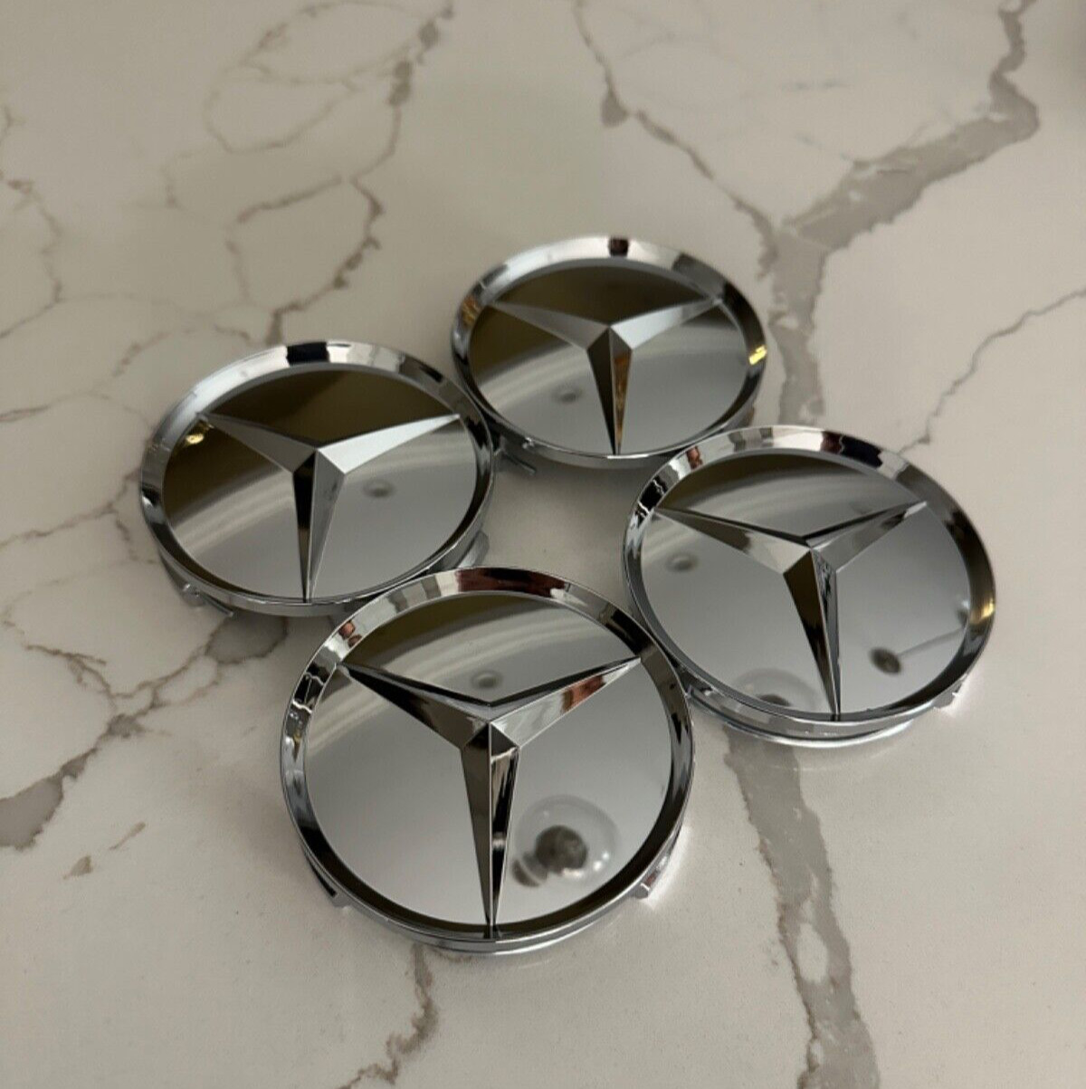 NEW SET OF 4 COMPATIBLE WITH MERCEDES-BENZ FULLY CHROME WHEEL CENTER HUB CAPS EMBLEM 75MM / 3 INCH diameter PART NUMBERS: 170-400-00-25, 170-400-01-25, 170-400-01-25-5337, 171-400-00-25-5337, 463-400-05-25, 6-6-47-0120, 6-6-47-0210, b66470120, b66470210, A2204000125, B66470200 FITMENT YEARS START FROM 1990. MODELS: 190 D, 190 E, 300 CE, 300 SD, 300 SDL, 300 SE, 300 SEL, 300 SL, 300 TD, 300 TE, 350 SD, 350 SDL, 400 E, 400 SE, 400 SEL, 420 SEL, 500 E, 500 SEC, 500 SEL, 500 SL, 560 SEC, 560 SEL, 560 SL, 600 SEC, 600 SEL, 600 SL, C 220, C 230, C 250, C 280, C 300, C 350, C 63 AMG®, CL 500, CL 55 AMG®, CL 550, CL 600, CL 63 AMG®, CL 65 AMG®, CLK 320, CLK 350, CLK 430, CLK 500, CLK 55 AMG®, CLK 550, CLK 63 AMG®, E 250, E 300, E 320, E 350, E 400, E 420, E 430, E 500, E 55 AMG®, E 550, E 63 AMG®, E 63 AMG® S, G 500, G 55 AMG®, G 550, G 63 AMG®, GL 320, GL 350, GL 450, GL 550, GL 63 AMG®, GLK 250, GLK 350, ML 320, ML 350, ML 430, ML 450, ML 500, ML 55 AMG®, ML 550, ML 63 AMG®, R 320, R 350, R 500, R 63 AMG®, S 320, S 350, S 400, S 420, S 430, S 500, S 55 AMG®, S 550, S 600, S 63 AMG®, S 65 AMG®, SL 320, SL 500, SL 55 AMG®, SL 550, SL 600, SL 63 AMG®, SL 65 AMG®, SLK 230, SLK 250, SLK 280, SLK 300, SLK 32 AMG®, SLK 320, SLK 350, SLK 55 AMG®, SLR McLaren, SLS AMG® 100% FITMENT ONLY TO ORIGINAL MANUFACTORY WHEELS. For any questions and concerns about fitment please feel free to contact me. Shipping- We ship parts in 1 business day of receiving cleared payment. We use usps ground or FedEx home delivery. Usually when you order and pay before 10PM your item would be sent out the same day. All parts are 14 days return policy. Feedback- If you are satisfied with the item you received we would highly appreciate a positive feedback on our profile. If you have any problems with the received item, contact us to solve it.