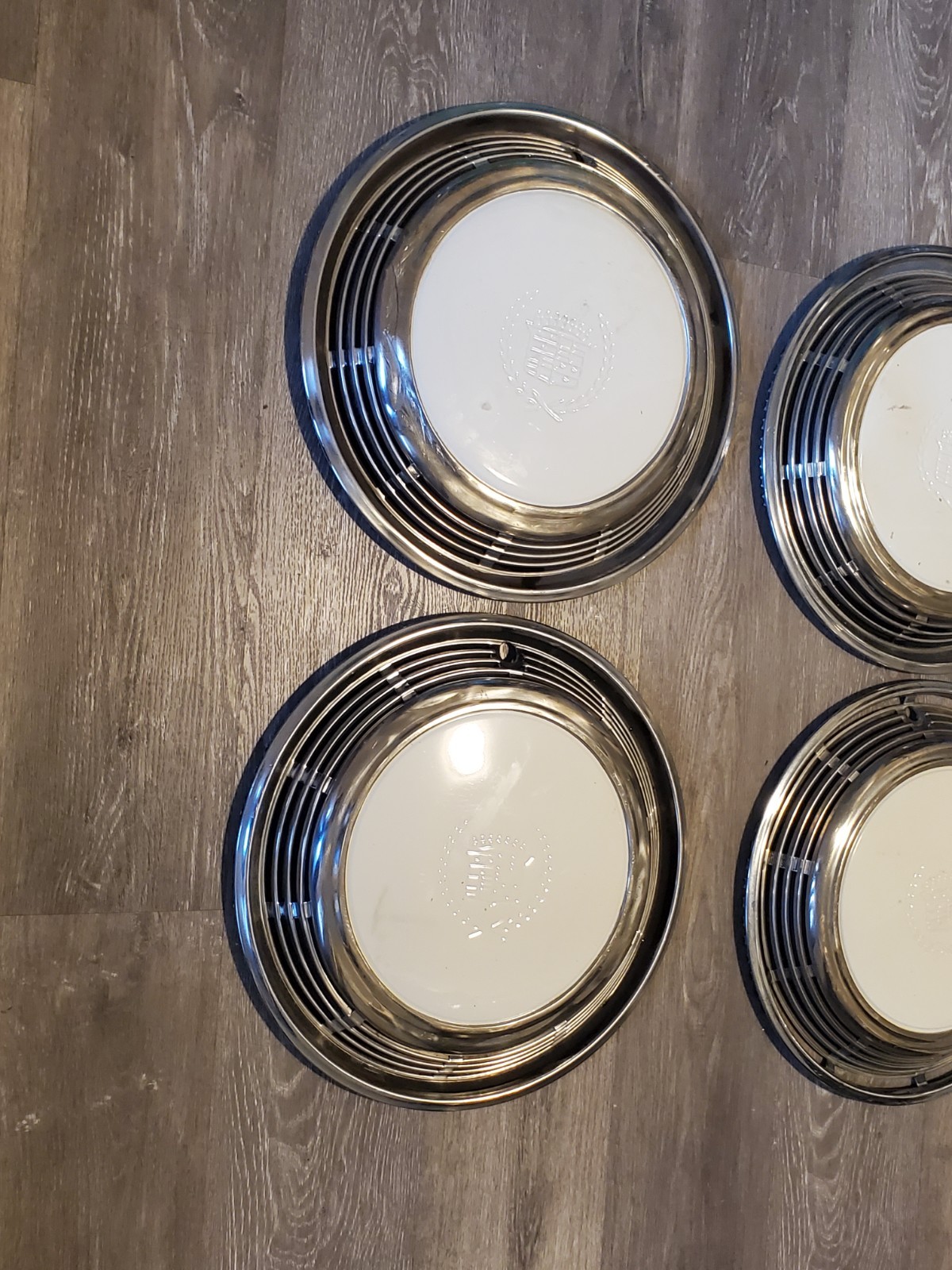 Set Of 4 Vintage Cadillac Wheel Hubcap Covers Painted White Eldorado, 1972 73 76