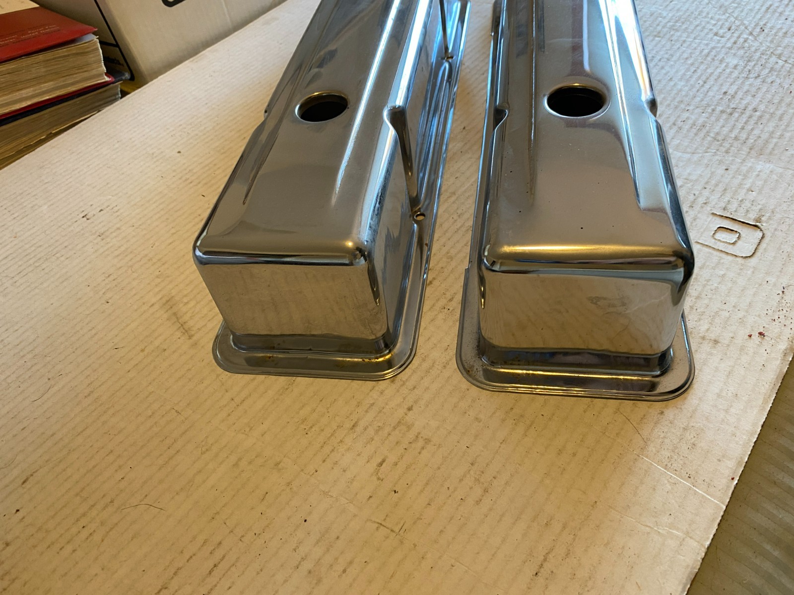 Set of vintage tall chrome valve covers
