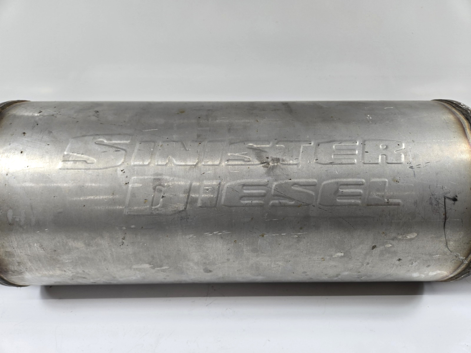 Sinister Diesel Universal Muffler. Remove for a 2003 F250, muffler body is 6.5 inches in diameter and 16 inches long. the total length is 30 inches * * * Carefree Guarantee: - **Quality Assurance**: All parts undergo thorough checks by our experienced technicians before listing. - **Reliable Shipping**: We ship to the lower 48 states via UPS or freight, ensuring safe delivery. - **Local Pickup**: In-person pickup is always welcome for added convenience. - **Dedicated Customer Support**: Our friendly and knowledgeable team is here to assist you throughout the purchase process. - _Message Us with Any Questions! Feel free to reach out with any inquiries; we are here to help._ Please note the following: - **Buyer Responsibility**: We do NOT cover ordering an incorrect part. Buyers will be responsible for return shipping. - **Always Double Check Compatibility**: We highly recommend double-checking compatibility before making a purchase to ensure a smooth buying experience. Shop with confidence at Carefree Auto Salvage. Our commitment to quality and customer satisfaction sets us apart. Thank you for choosing us for your automotive needs!