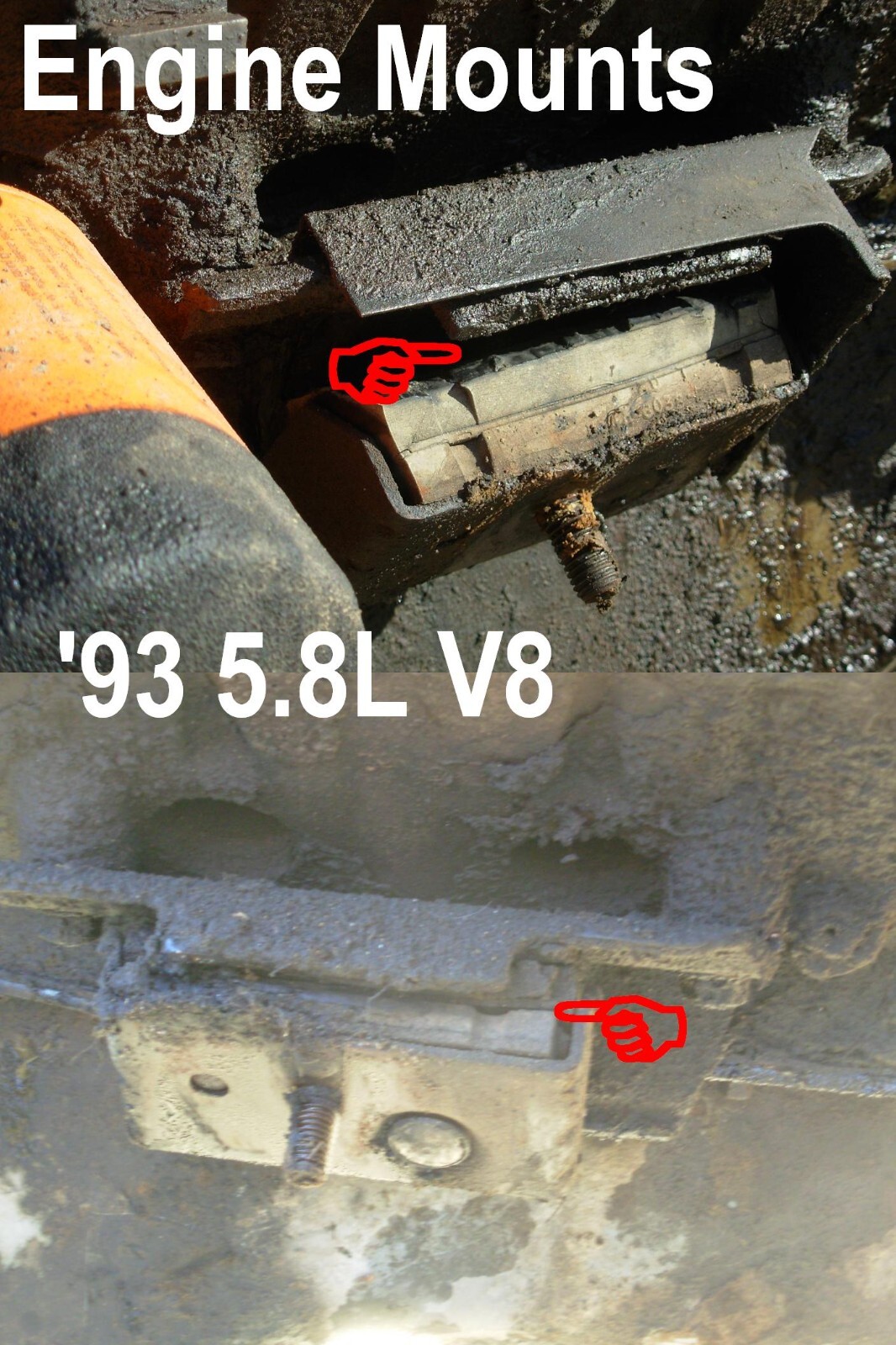 **Fabricated Steel/Poly Engine Mount Pair for smallblock V8s (302ci, 5.0L, 351W, & 5.8L)** This listing is for a pair (1 Left; 1 Right; ONLY without nut) of hand-made engine mounts for all smallblock V8 Broncos & F-series (F150, F250, F350) and 1997 over 8500GVWR (Heavy Duty 8-lug & 10-lug; not for '97 5- or 7-lug). Unlike solid mounts, these still provide isolation between the engine & frame, without allowing the movement that common rubber mounts do. They are painted DupliColor Ford Gray and are greased during assembly, so they're ready to install using YOUR ORIGINAL M12x1.75mm nuts (because pre-90 trucks may have 1/2"-13 which don't fit these mounts' studs) & your original bolts (in the block, which never changed). They don't break like common imported replacements, and they can be rebuilt with Energy 2.2111G bushings or equivalent. Similar mounts are available from other sellers that raise the engine, but not painted & greased. Mine do NOT raise the engine above factory height, but they may raise it from the broken/collapsed mounts' position back to factory height. With these mounts, a scrap of 2x4 will barely slide between the pan & (clean) frame. These are also being sold locally, so the quantity may change, or the listing may end, or a winning bid may be cancelled. If you'd like another shipping option, contact me before buying. No changes can be made after purchase. Check my other listings for more '92-96 Bronco & F-series parts, including poly 4.9L I6 mounts and transmission mounts.