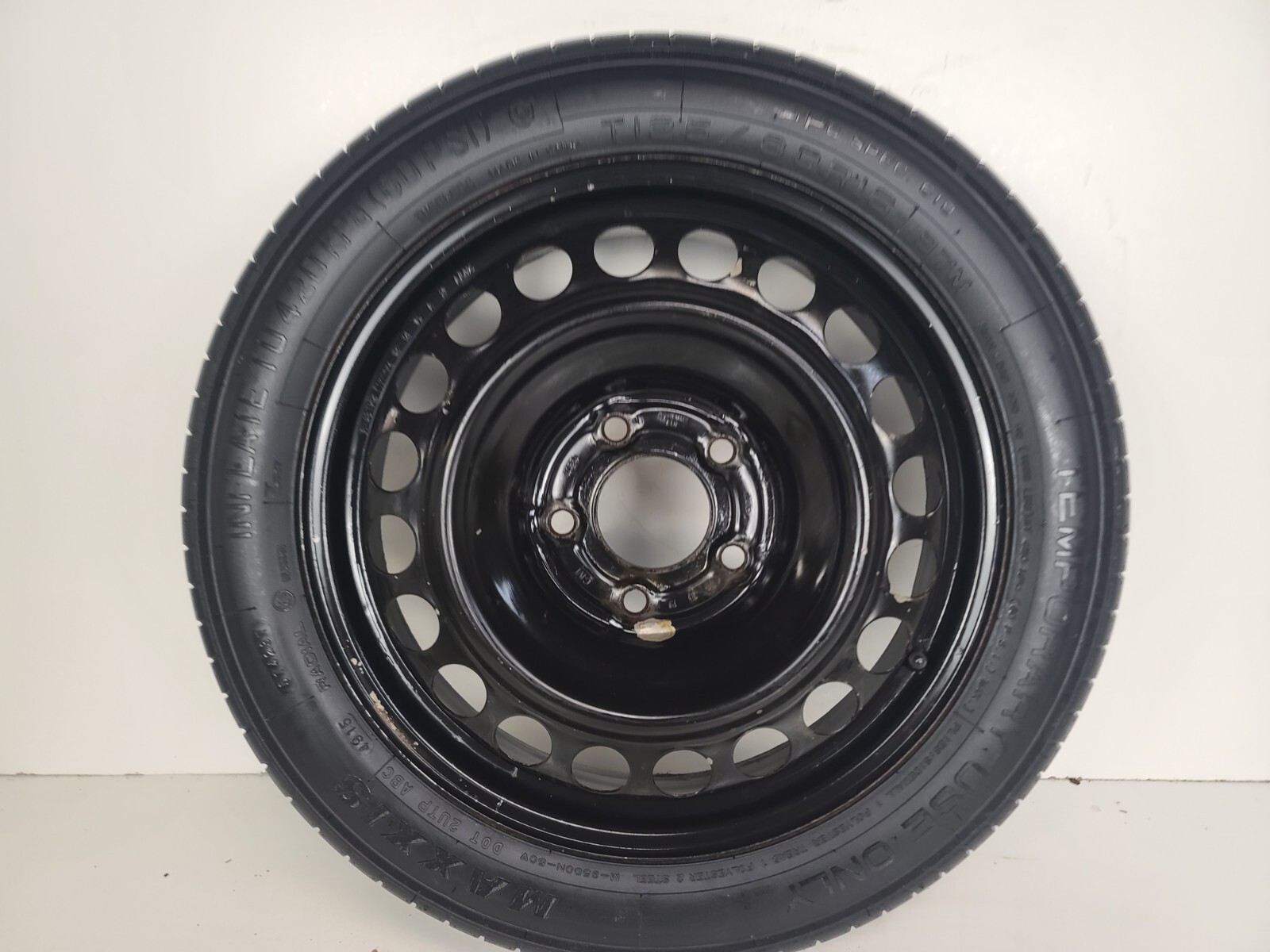 **MINI DONUT SPARE TIRE NOT A FULL-SIZE SPARE COMES MOUNTED WITH THE WHEEL** **FAST AND FREE SHIPPING** **(SORRY WE ARE SHIPPING ONLY TO THE 48 CONTINENTAL USA STATES)** **MAY HAVE FEW SPOTS/STAINS/RUST/SCRATCHES, SEE PICTURES.** **OUR COMPACT SPARES ARE MOUNTED FULL WITH AIR AND READY TO USE** **Please magnify and study all images before purchase.** **Please verify tire size and compatibility before purchase.**